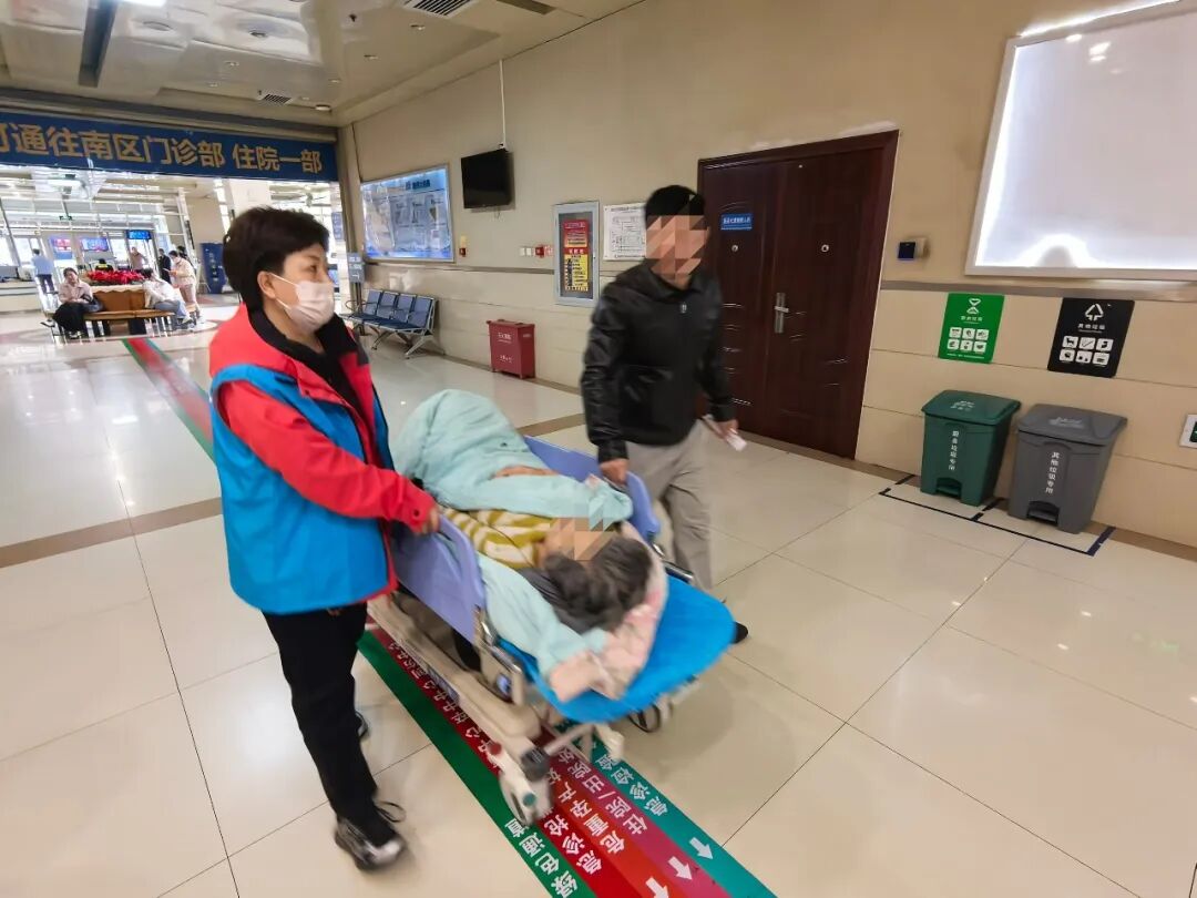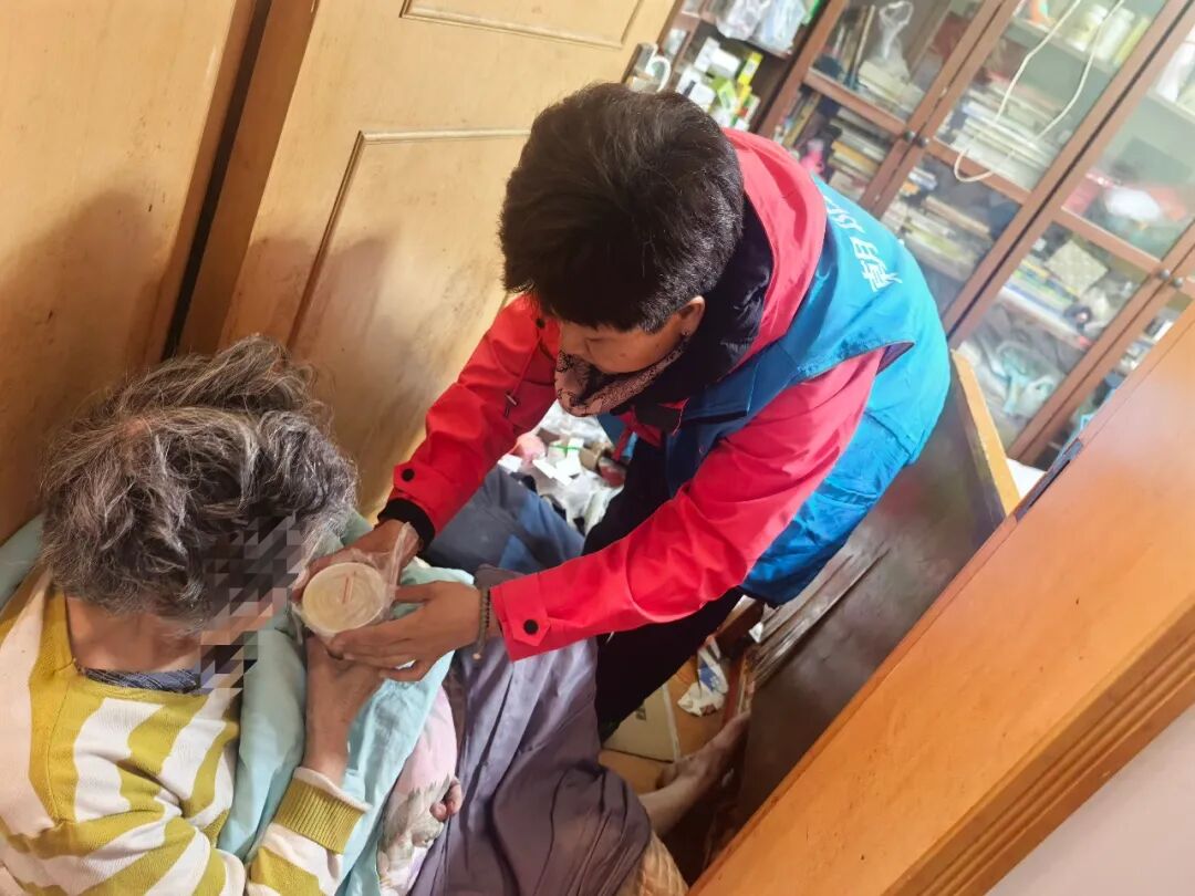 起初,老人怎么也不肯去医院,坚持想要躺到床上,社工尝试挪动老人时,她直喊疼,众人连忙停止。担心老人受凉,大家小心翼翼地为她垫上褥子、裹好被子。考虑到老人长时间未进食,社工前往老年餐厅买来温热的小米粥,烧好开水,少量多次喂给老人。