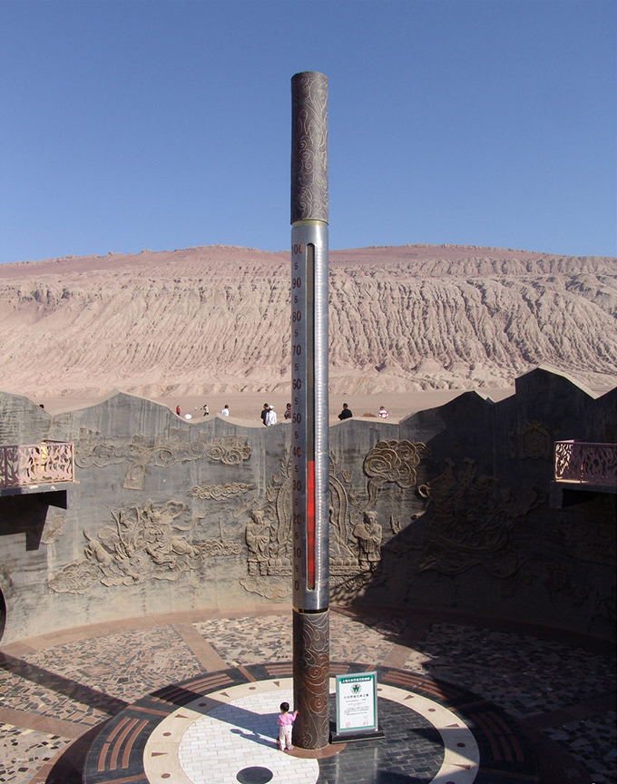 火焰山:别的地方爬山是“累”,这里爬山是烤。️ 夏季地表温度直冲80℃+,沙窝里埋个鸡蛋,十分钟全熟。一根12米高的巨型温度计,造型就是孙悟空的金箍棒 ,上面实时显示当前地表温度。来火焰山不需要勇气,需要的是:防晒霜 + 墨镜 + 一瓶冰水 + 一颗不怕热的心。