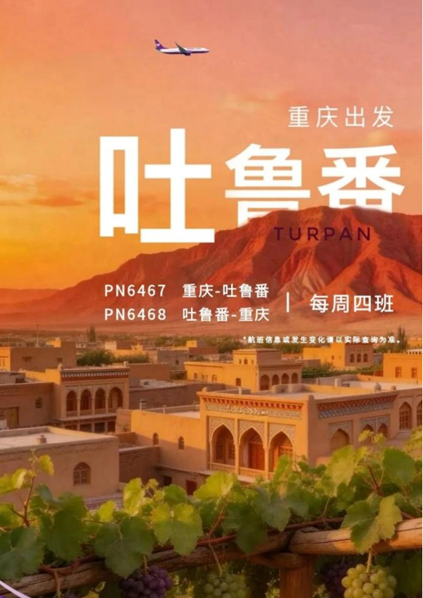 ● 重庆 ⇌ 吐鲁番直飞航线稳定运营