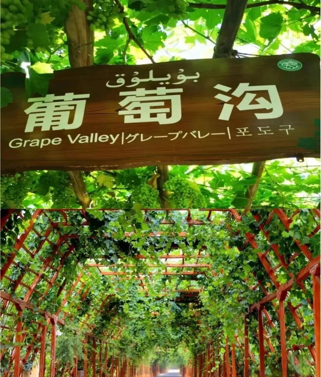 葡萄沟:这里是一座“甜到上头”的绿洲王国。全长8公里,绿藤遮天,溪水潺潺,夏天沟内气温比外面低足足10℃。在火洲吐鲁番,这里是最奢侈的天然空调房。