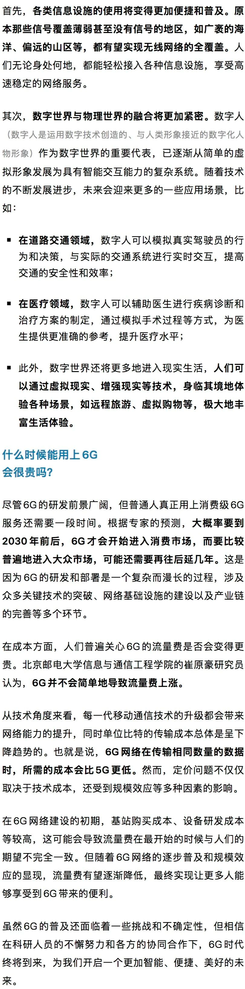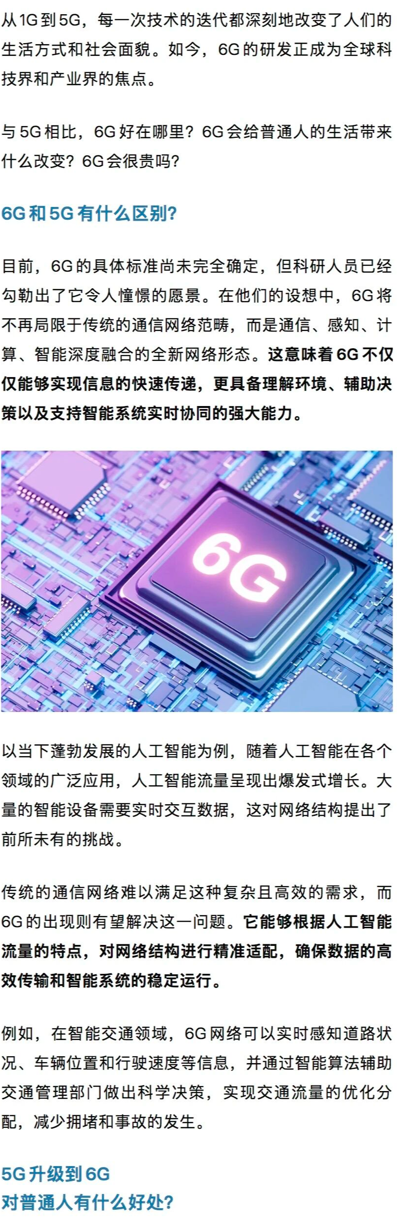 从5G到6G的跨越,对于普通人来说,将带来一系列直观且深刻的变化。(此前报道:6G要来了!下载1部4K电影不到1秒)