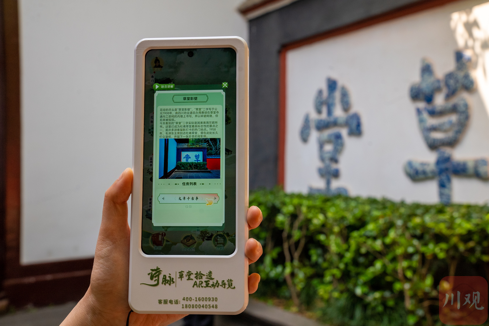 五一假期临近,杜甫草堂推出全新沉浸式体验项目——《诗脉|草堂拾遗》AR互动剧本游,通过AR眼镜与手持导览设备的结合应用,为游客提供新的参观方式。