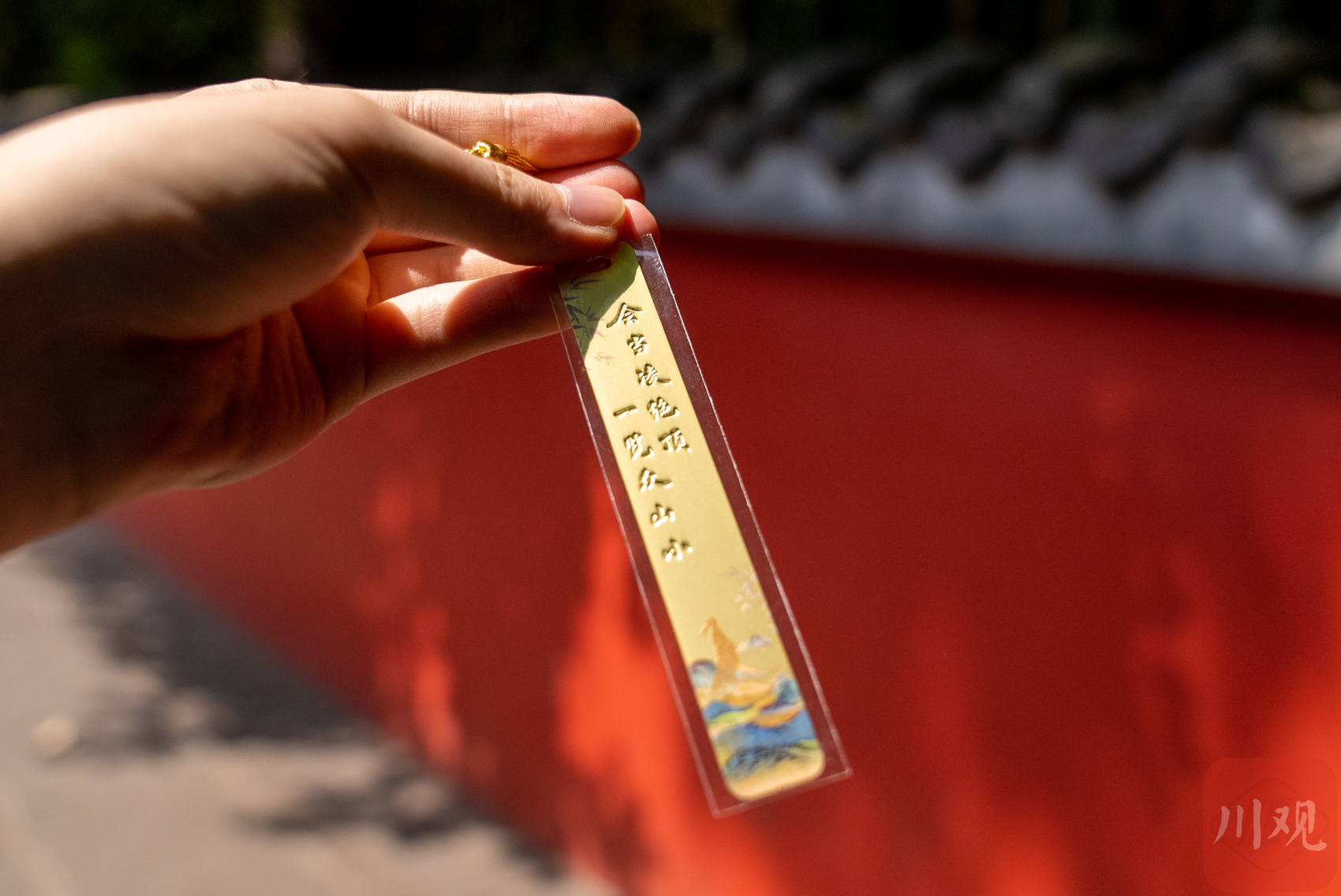 四川炽光启元运营经理邢子轩介绍,五一期间,游客使用AR手持导览机完成全部任务后,可获得诗词主题书签作为纪念。