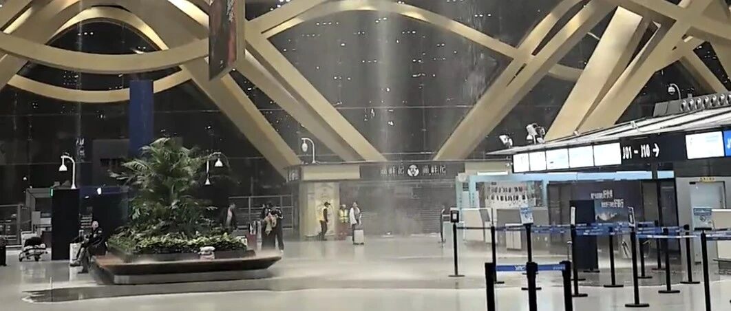 4月25日凌晨,不少网友发布视频称,昆明长水国际机场内到处漏水。25日上午,该机场客服人员告诉极目新闻记者,现场正在进行抢修。