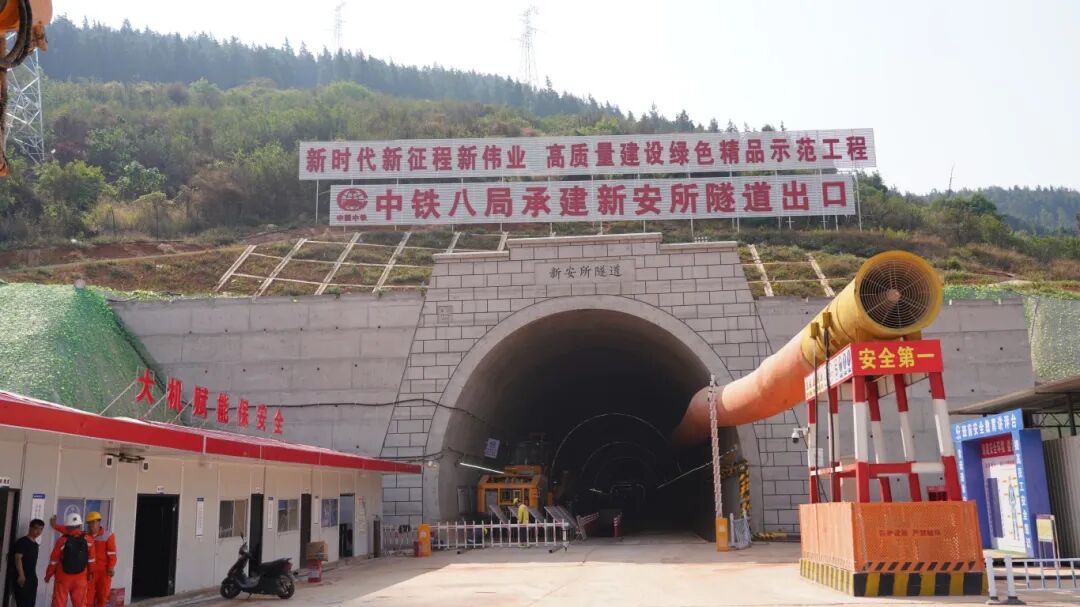 新安所隧道位于蒙自市新安所镇,全长3569米,最大埋深约234米,进口内轨顶面高程1479.79米,出口内轨顶面高程1395.92米,隧道内纵坡设计为单面下坡,地质条件复杂,是文蒙铁路建设中的重点控制性工程之一。