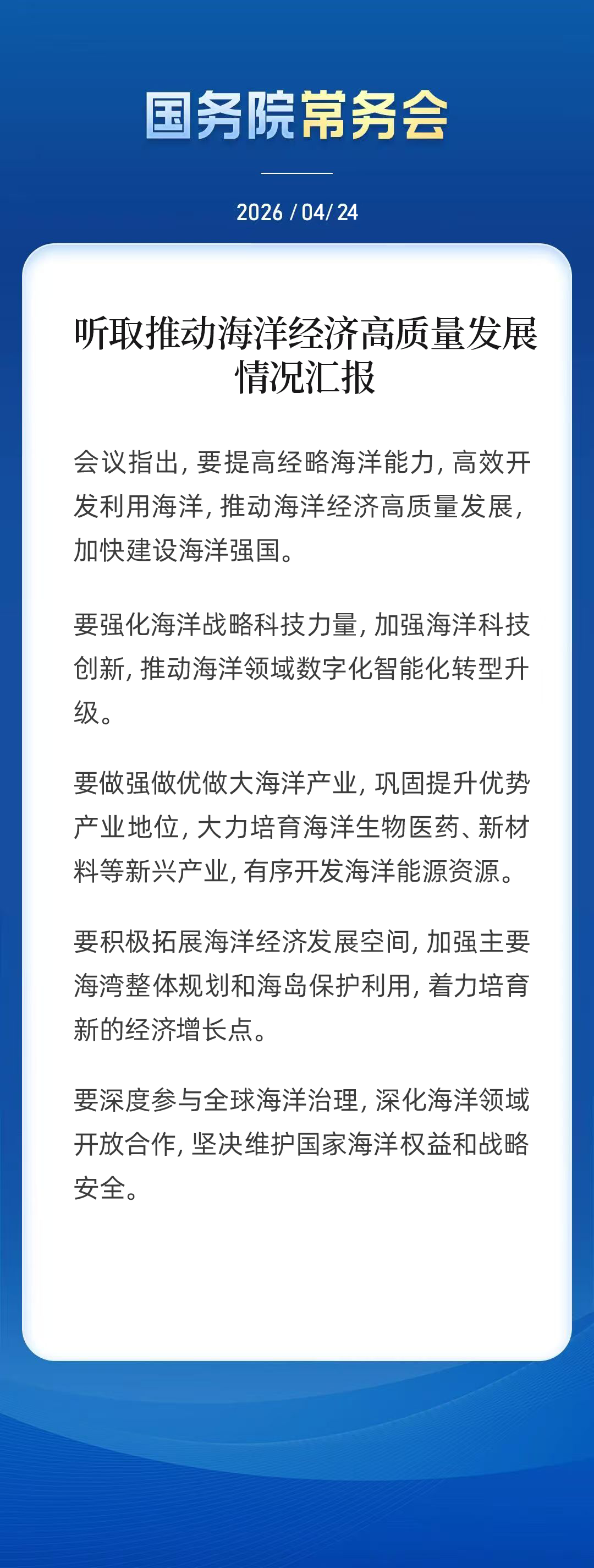 国务院常务会听取推动海洋经济高质量发展情况汇报