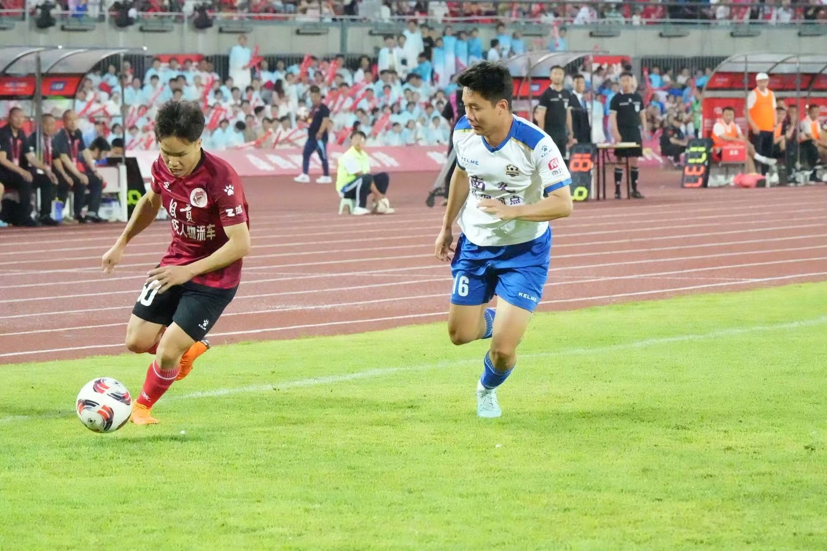 随后比赛进入伤停补时阶段,补时最后一分钟,第102分钟,自贡队56号张乐涛在中场附近完成抢断,随后他带球长驱直入,连续过掉对方四名防守球员,冷静推射破门——4:2!这粒精彩绝伦的进球彻底杀死了比赛悬念,也为这场跌宕起伏的对决画上了完美句号。最终,自贡灯城燊龙队主场4:2战胜南充丝绸源点队。