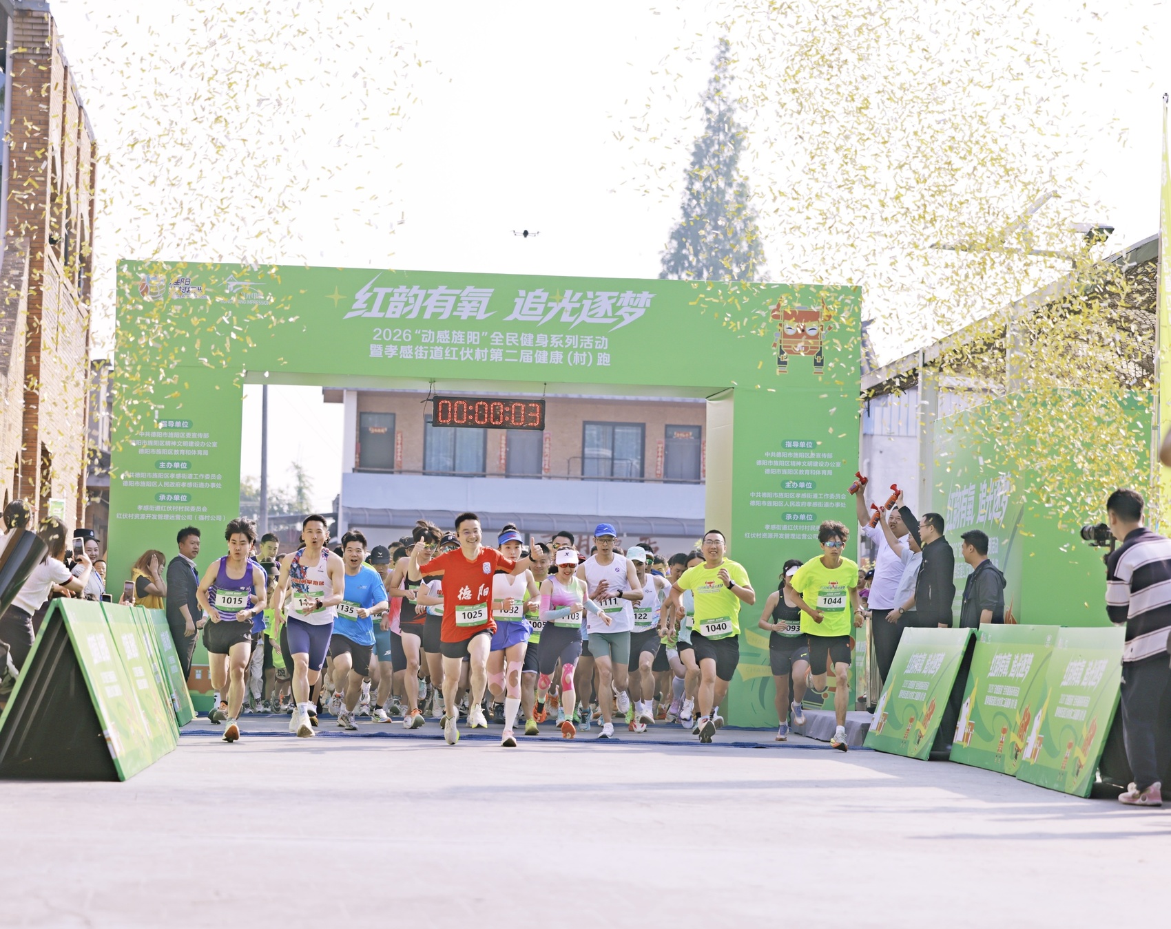 春风拂面,逐趣乡野,运动赋能和美乡村。4月25日上午,德阳市旌阳区乡村田野间活力涌动,“红韵有氧·追光逐梦”2026“动感旌阳”全民健身系列活动暨德阳市旌阳区孝感街道红伏村第二届健康村跑鸣枪开跑。