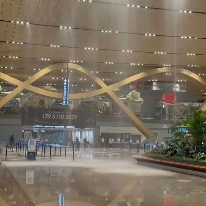 图据网络 昆明长水机场航站楼屋面排水系统的虹吸口被冰雹堵塞,发生漏水