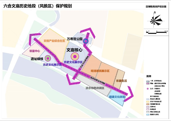 规划成果全面梳理了六合文庙现有历史文化遗存,形成历史文化保护对象名录,提炼总结出六合文庙的历史文化价值特色,提出了切实可行的保护策略及片区发展引导性建议,旨在通过多元主体参与的可持续的“小规模、渐进式”保护更新,把六合文庙片区打造成延续传统居住功能,并兼具文化展示和旅游休闲功能的高品质复合型历史地段。