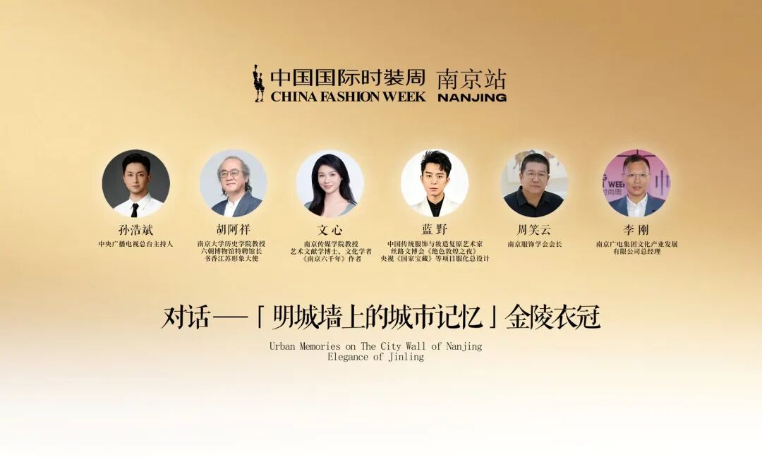 高端时尚对话《金陵衣冠|明城墙上的城市记忆》重磅集结多位权威嘉宾,由中央广播电视总台主持人孙浩斌担纲主持,特邀南京大学历史学院教授、六朝博物馆特聘馆长、书香江苏形象大使胡阿祥,南京传媒学院副教授、艺术文献学博士、文化学者、《南京六千年》作者文心,中国传统服饰与妆造复原艺术家、丝路文博会《绝色敦煌之夜》、央视《国家宝藏》等项目服化总设计蓝野,与南京服饰学会会长周笑云,南京广电集团文化产业发展有限公司总经理李刚等多位专家学者同台论道,共同挖掘南京城市文化基因,探讨历史文脉如何转化为当代时尚语言。