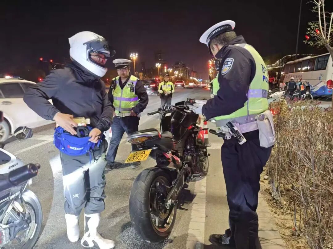 按照西宁市公安局党委的统一安排部署,结合春季道路交通安全专项整治行动,西宁市公安局交通管理局针对海湖新区夜间摩托车聚集、存在飙车“炸街”扰民隐患的实际,科学部署警力,积极采取定点设卡与流动巡查相结合的方式,在该区域集中开展摩托车违法行为专项整治行动,全力为广大市民营造安全、宁静、有序的道路交通环境。