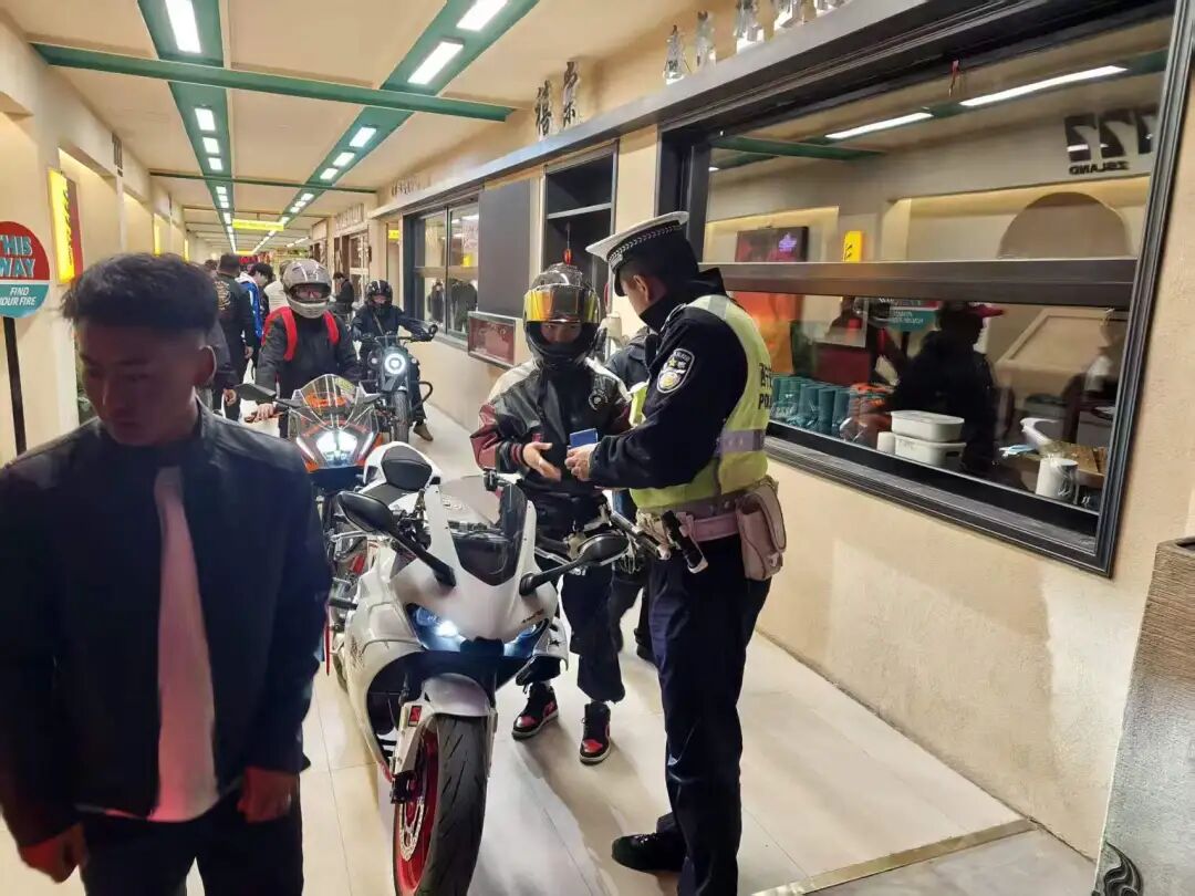 广场摩托车聚集:逐一排查,依法处置。与此同时,根据工作线索,海湖新区北城七区广场内出现大量摩托车聚集。西宁交管迅速响应,组织警力第一时间抵达现场,对聚集车辆全部拦截并逐一查验。经细致排查,共检查摩托车47辆,查获各类违法行为11起,其中非法改装排气1起,依法暂扣违法车辆1辆。执勤民警依法对相关驾驶人进行了处理,并现场开展安全警示教育。