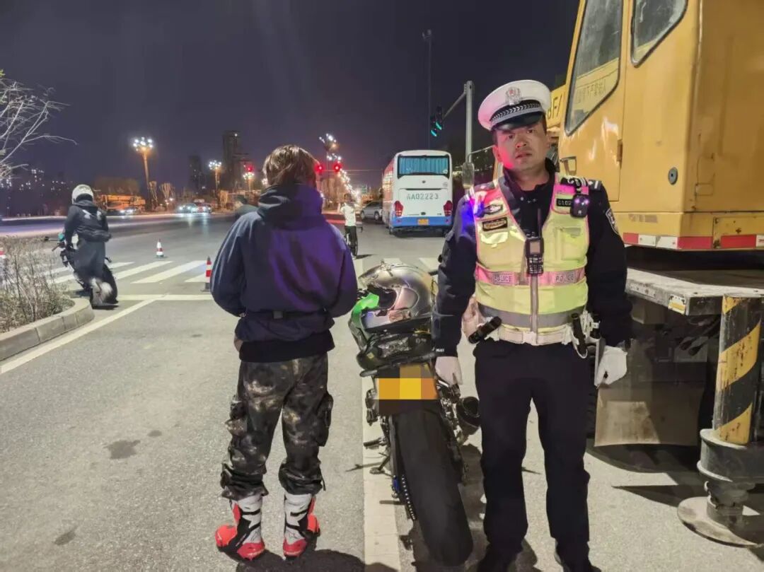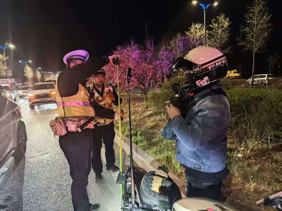 昆仑西路设卡夜查:严管严处“炸街”扰民。4月24日晚,西宁交管在海湖新区昆仑西路设立检查点,对过往摩托车进行严格排查。行动中,执勤民辅警重点查处非法改装排气、拆除消音器、无牌无证等违法行为,并对驾驶人开展面对面安全教育,强调文明骑行、守法出行的重要性。当晚,累计检查车辆100余辆,依法拖移违法摩托车1辆,查处各类交通违法行为4起,批评教育5人。