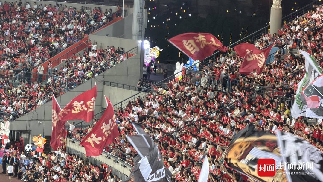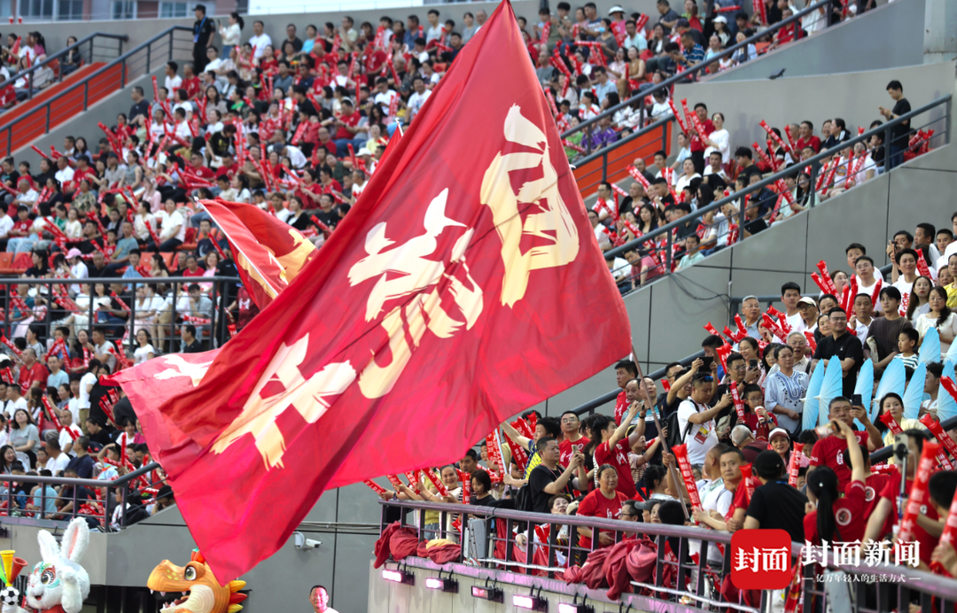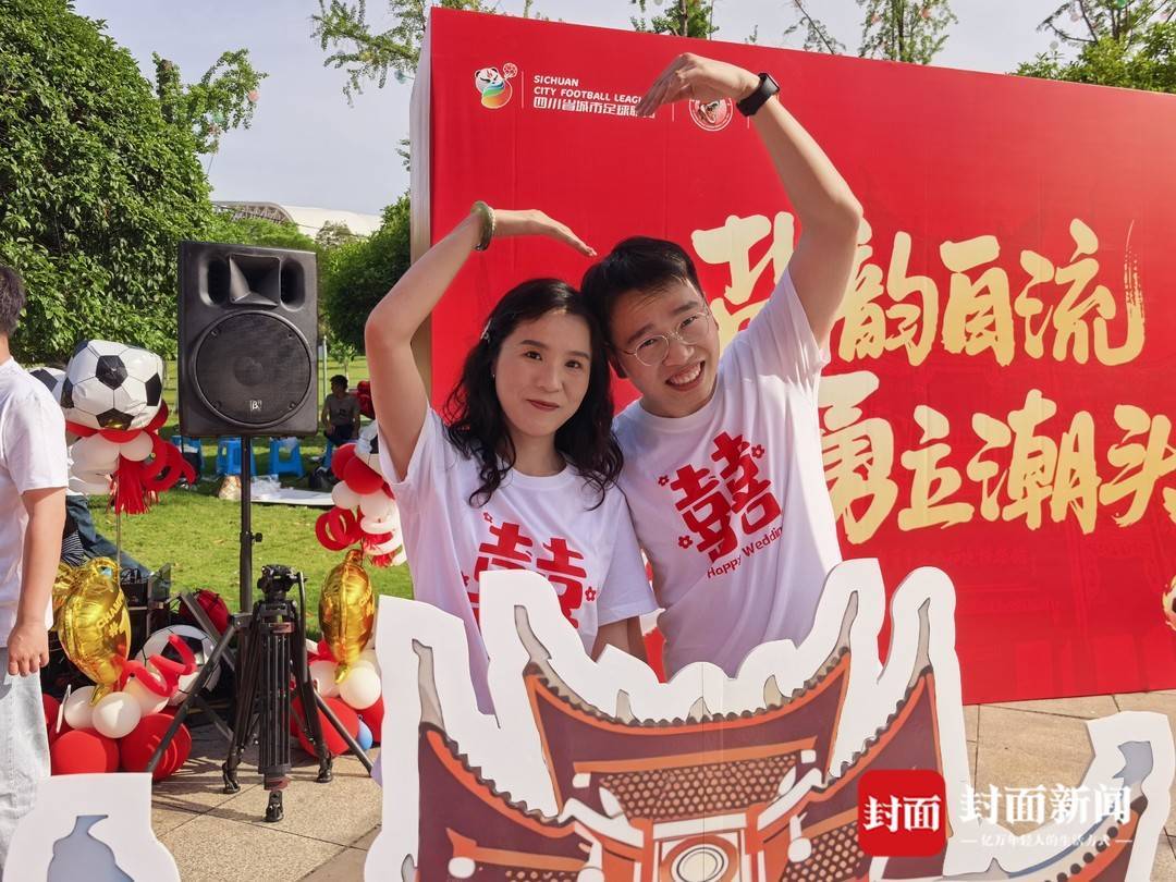本场川超比赛为“自流井专场”,作为东道主的自贡自流井区为远道而来的客人准备了诚意满满的“宠客礼包”,内含冷吃兔、老师专面包、足浴盐、中医药香囊、球员签名背包等极具地方特色的伴手礼,尽显盐都人民的热情好客。此外还精心设置了一段浪漫的“插曲”——有多对新人川超赛场集体领证,其中一对新人恰好来自自贡和南充,自贡新郎李健与南充新娘何洵幸福感拉满,接受全场2万多球迷的热情祝福。比赛看台上,球迷新人方阵格外吸睛,以赛事见证浪漫,践行婚事新办、文明节俭的婚俗新风。