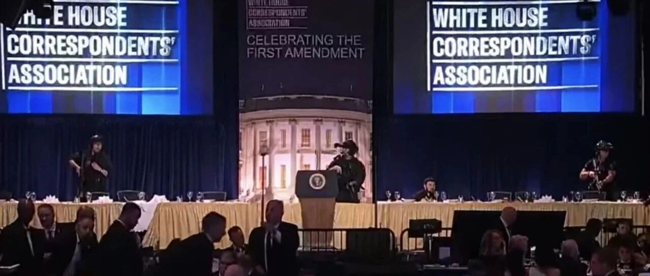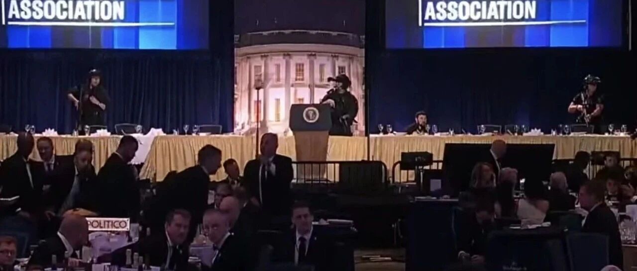 当地时间4月25日,有消息称美国华盛顿希尔顿酒店内传出“枪声”后,美国总统唐纳德·特朗普紧急撤离了白宫记者晚宴现场。(央视记者 曹健)