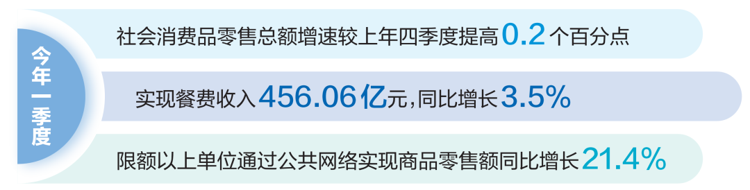 消费是拉动经济增长的基础性力量。今年一季度,在消费品以旧换新等各项促消费政策有力带动下,我省手机数码等升级类商品增长向好,居民基本消费总体稳定,网上零售持续增长。