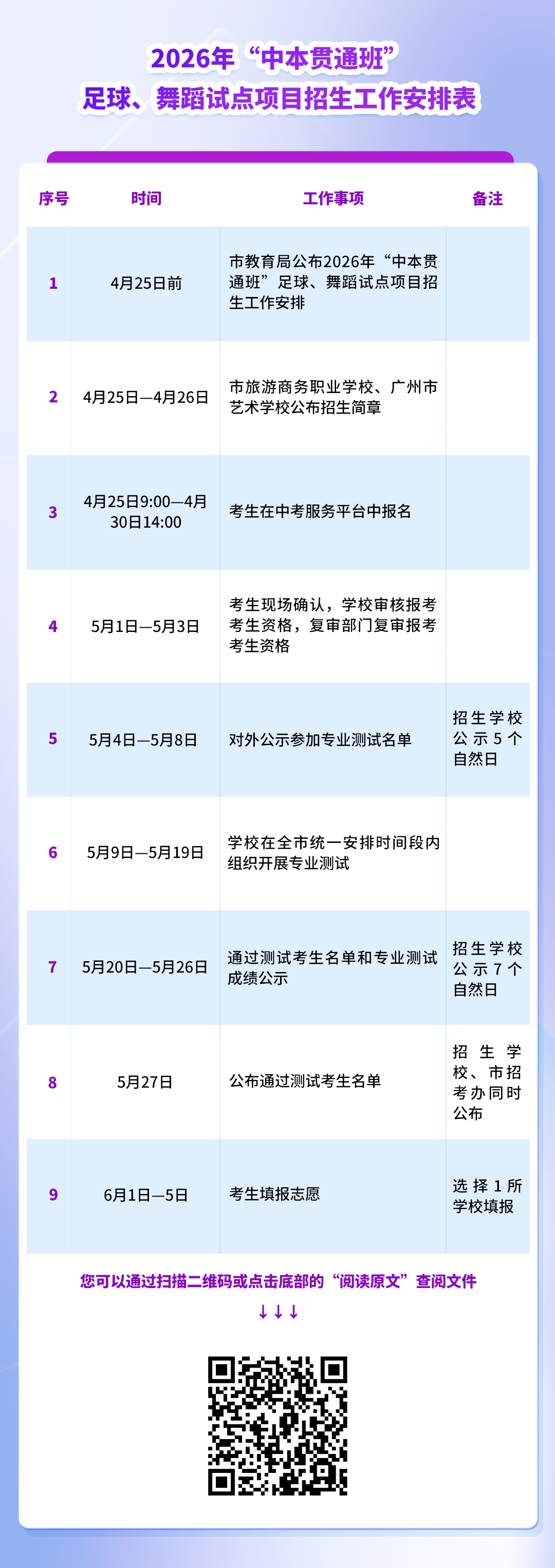 此外,广州今年首次开展“中本贯通班”足球、舞蹈试点项目(以下简称“试点项目”),具备相关特长的学生可通过“3+4”七年一体化贯通培养模式,实现“中职入学、本科毕业”的直通目标。