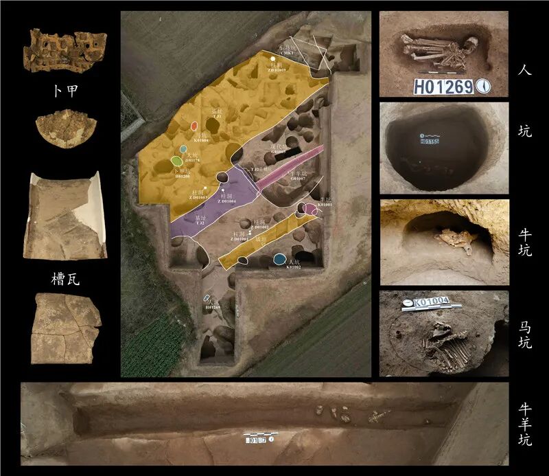 遗址以春秋早期遗存最丰富,包括城址、城外围沟、城内建筑基址、道路、骨料坑,以及城内外的墓葬、车马坑等。