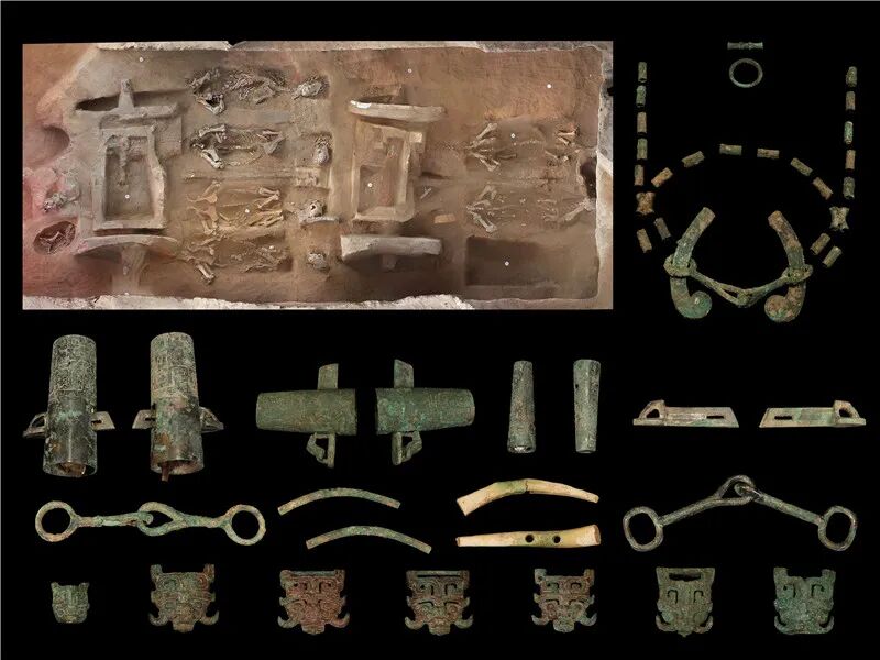城内清理一座春秋早期车马坑,3辆马车呈驾乘式,东西排列;出土衔、镳、辖、軎、络饰、牌饰、戈、镞、铜鱼。城外勘探发现一座长23米的大型车马坑。
