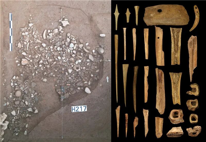 在城内东北部清理一个骨料坑,内含大量卵石、陶片、动物骨骼、骨器和制骨废料,骨器有笄、觽、铲、锥等,骨料主要是用牛跖骨切割制成。