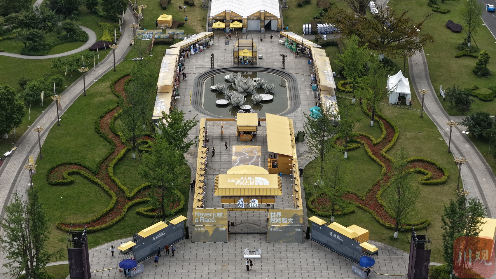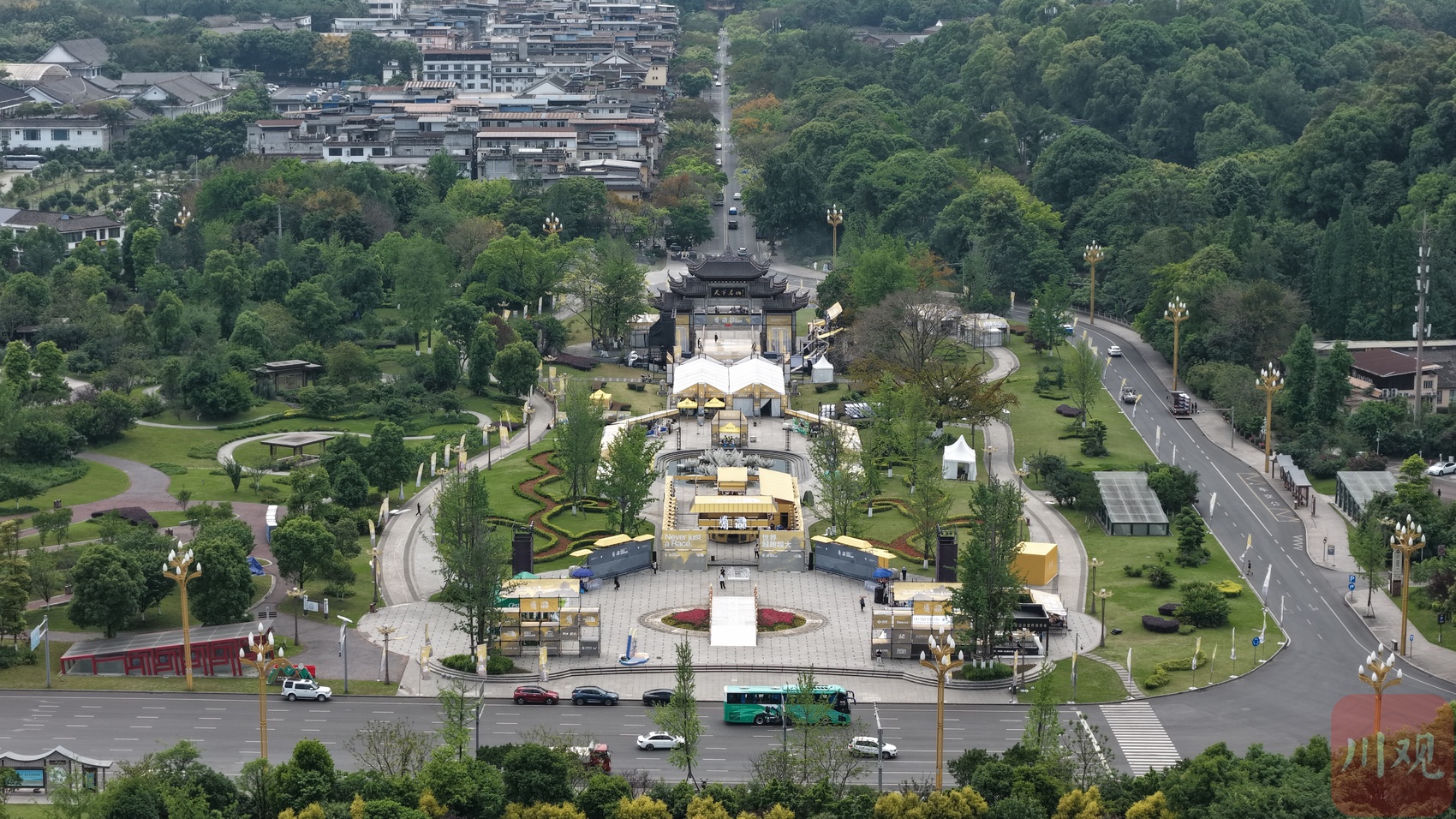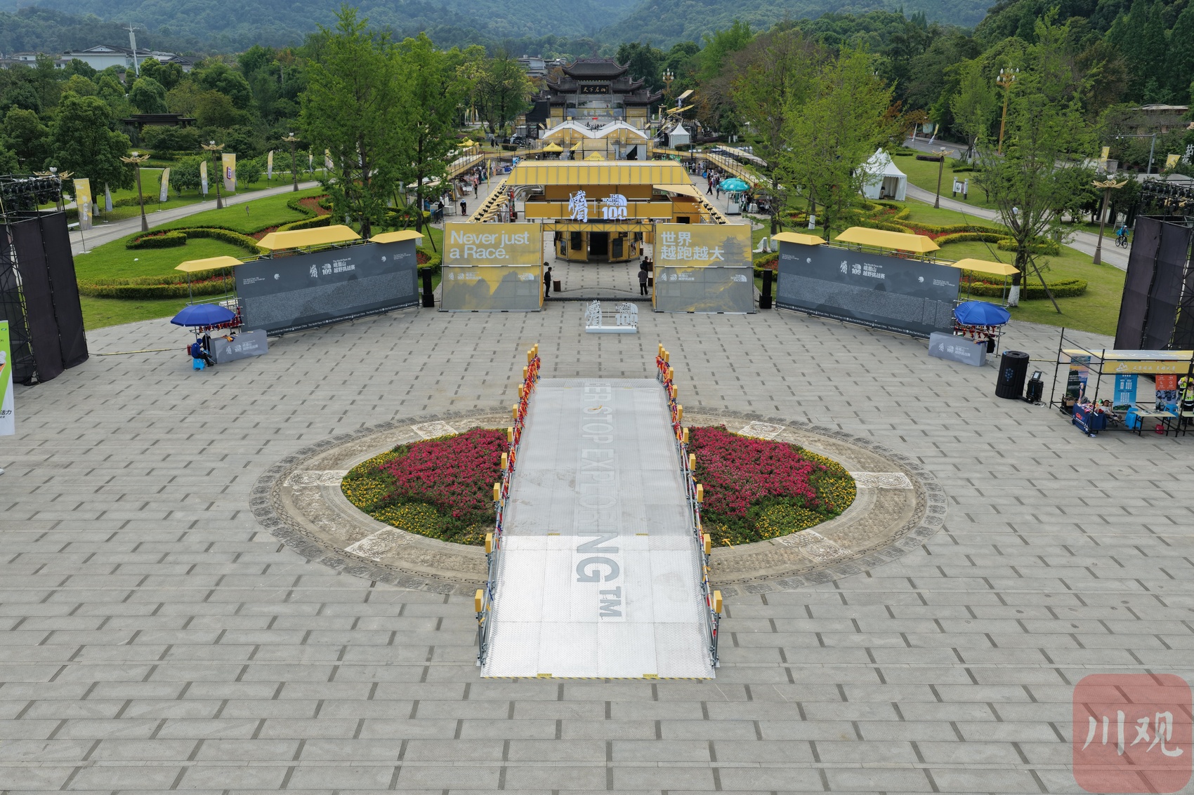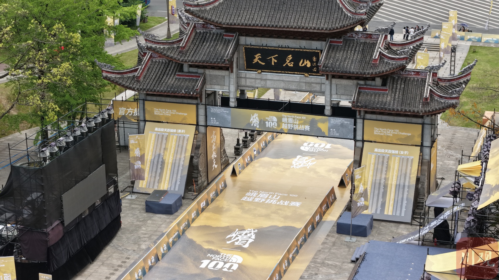 航拍峨眉山越野挑战赛起跑主会场入口