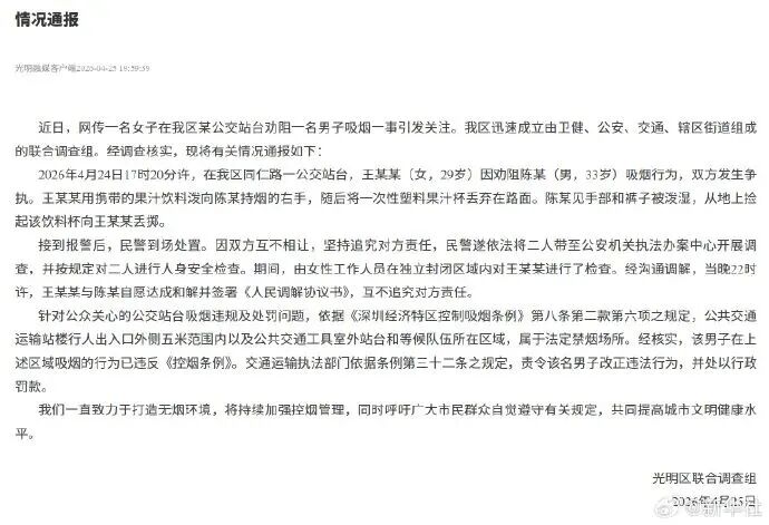 4月25日,深圳市光明区联合调查组发布情况通报,全文如下:
