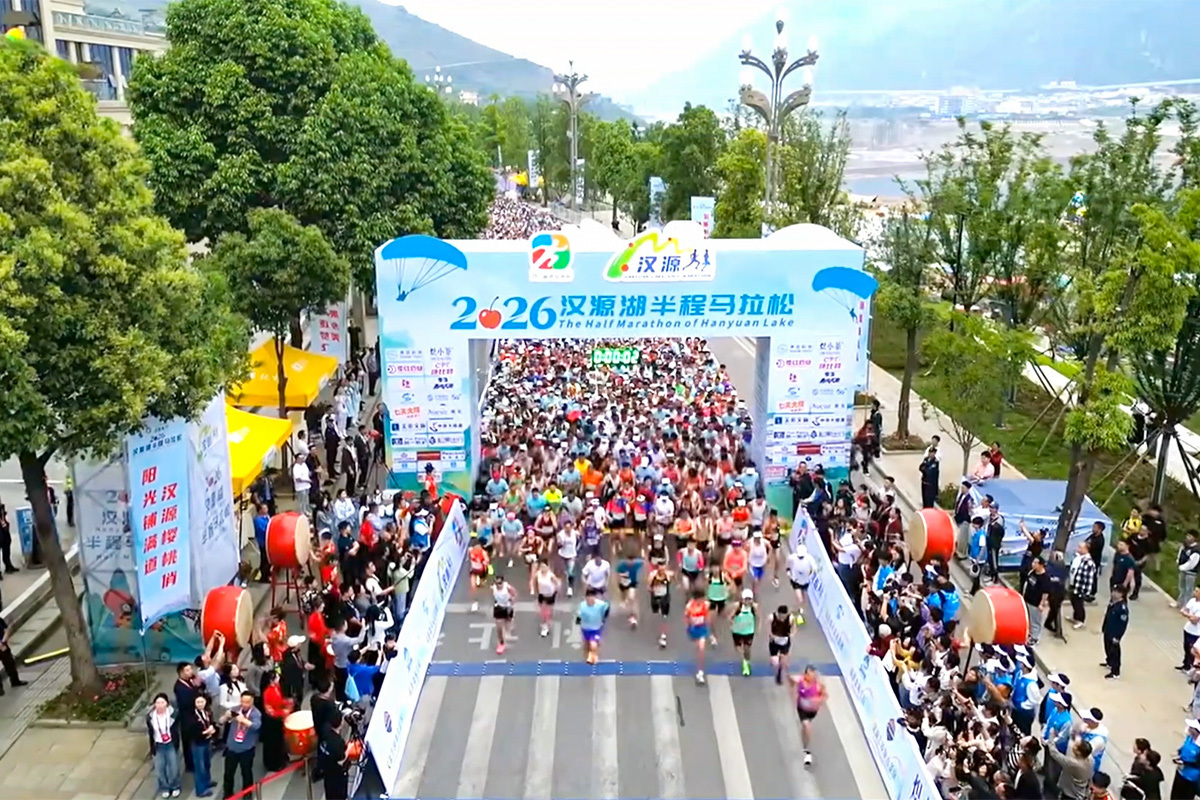 4月26日,雅安市汉源县,2026汉源湖半程马拉松在汉源湖畔鸣枪起跑。