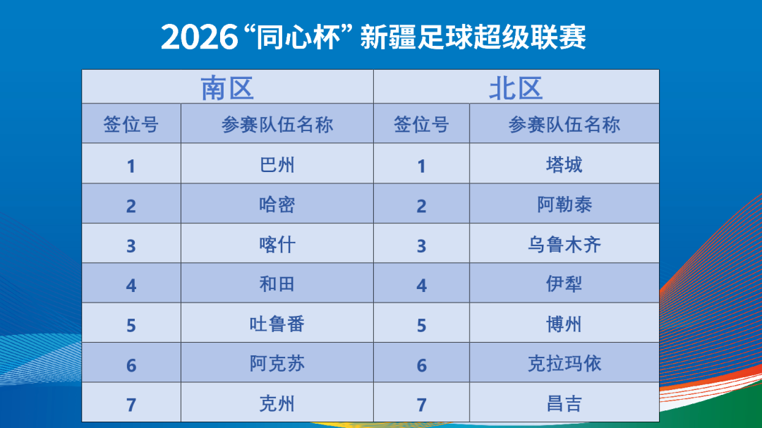 4月25日,2026年“同心杯”新疆足球超级联赛抽签仪式在乌鲁木齐举行,全疆14支参赛队伍的分组和赛程全部确定,属于新疆本土的足球赛事即将拉开序幕。