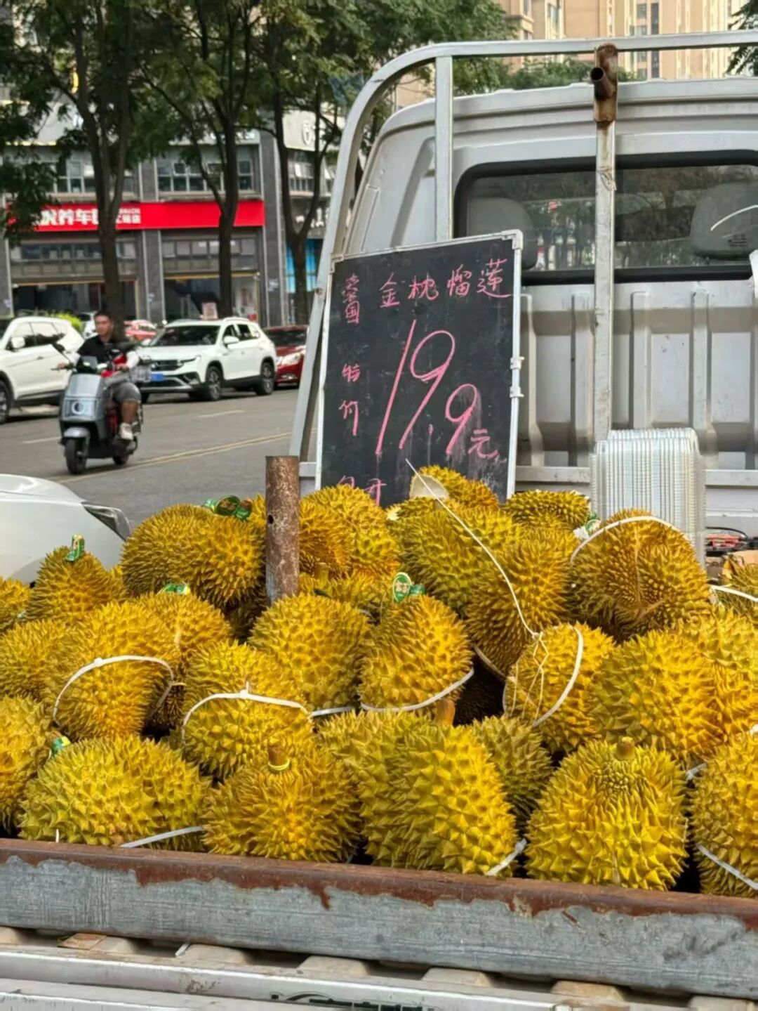 记者走访成都多家线下门店发现,榴莲价格的下降幅度颇为可观。在武侯区一家盒马鲜生店内,金枕榴莲标价29.9元/斤,销售人员告诉记者:“这比4月初便宜了近10块钱,现在每天能卖200多斤,基本到晚上就没货了。”记者在宽窄巷子附近的益民菜市长顺街店看到,这里的榴莲售价低至28元/斤,“4月上旬还卖36元一斤呢,这才半个多月,降了20%都不止!”摊主告诉记者。