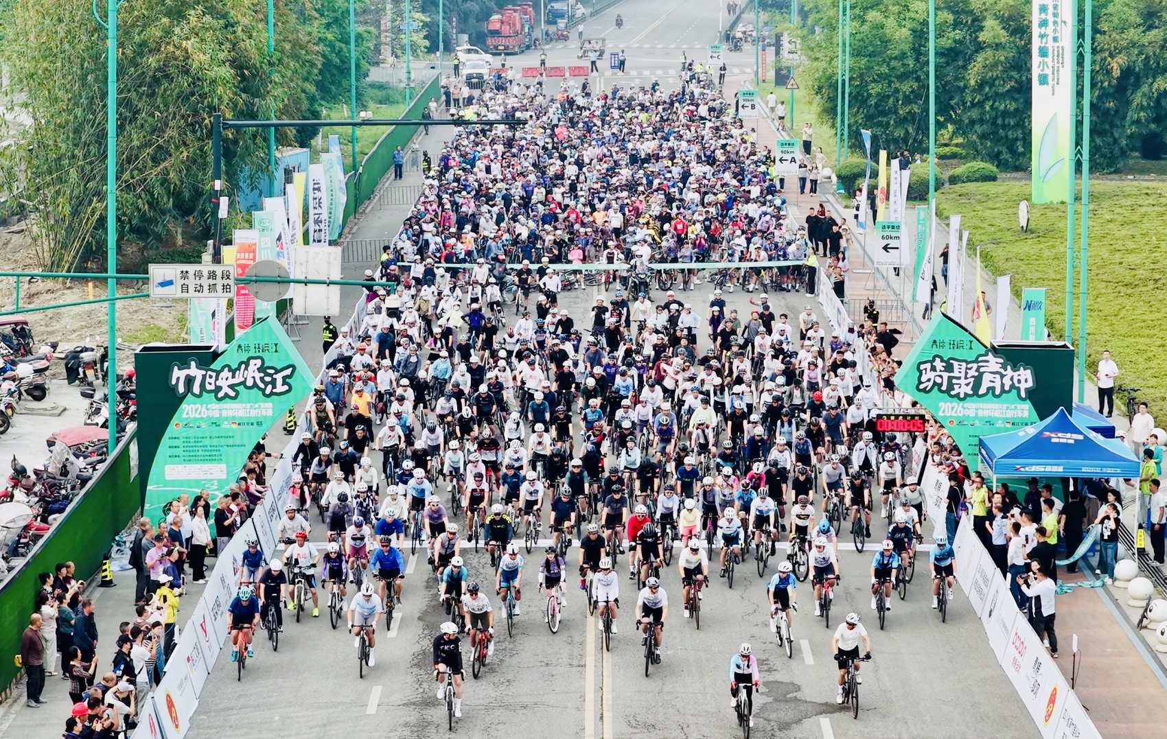 2026中国自行车运动骑游大会“江”系列暨中国·青神环岷江自行车赛开赛。(青神县委宣传部供图)