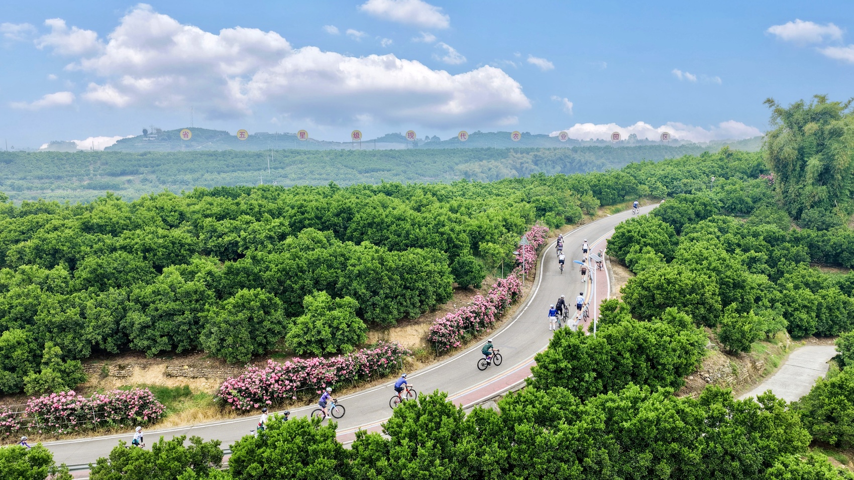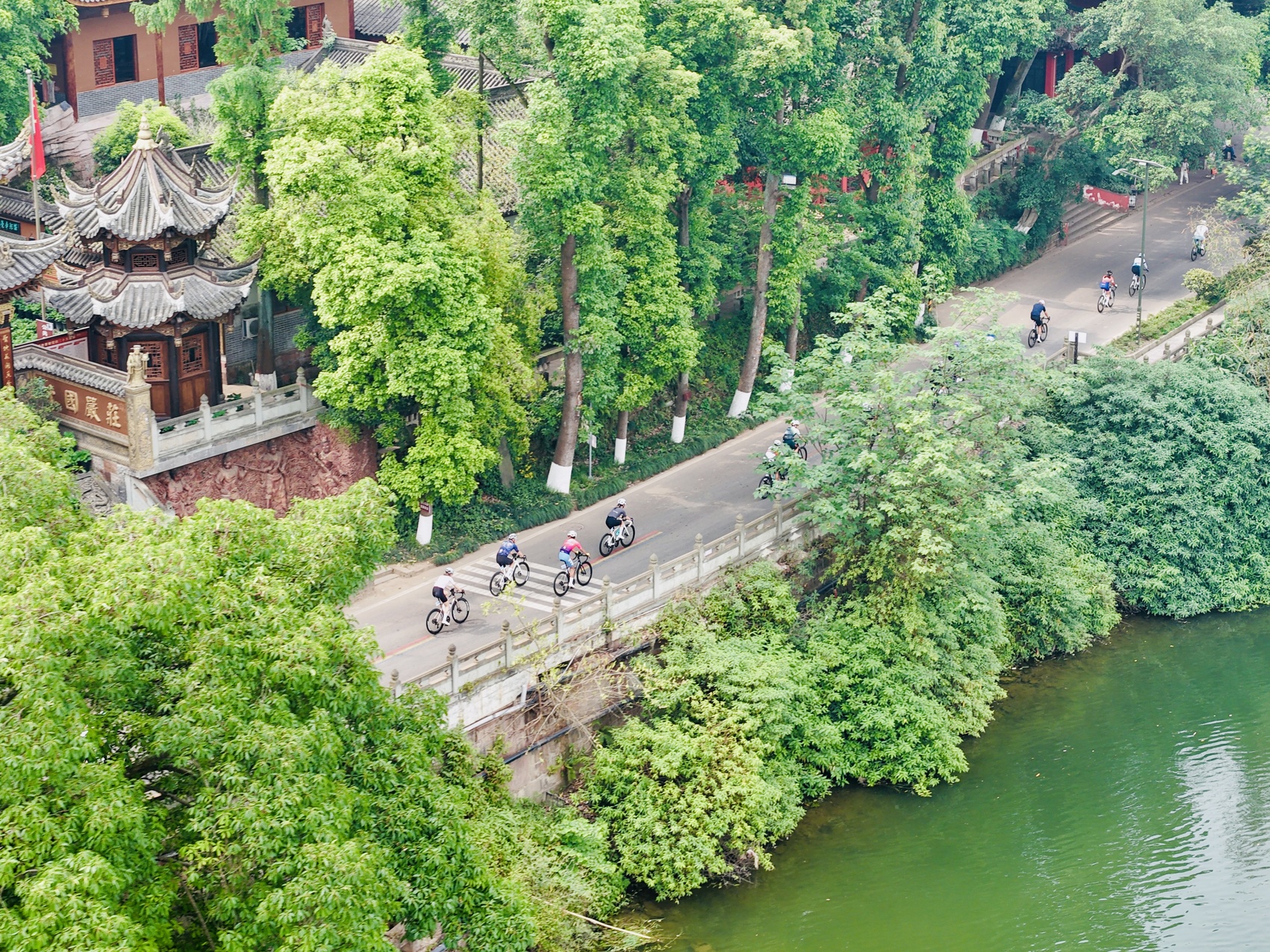 当天上午8:30,选手从国际竹艺城广场出发,途经竹艺大道、岷江二桥,饱览“半城山水半城竹”的城市风光,随后进入高白产业环线,橘园花果共生、蔷薇花墙连绵,田园景致尽收眼底。