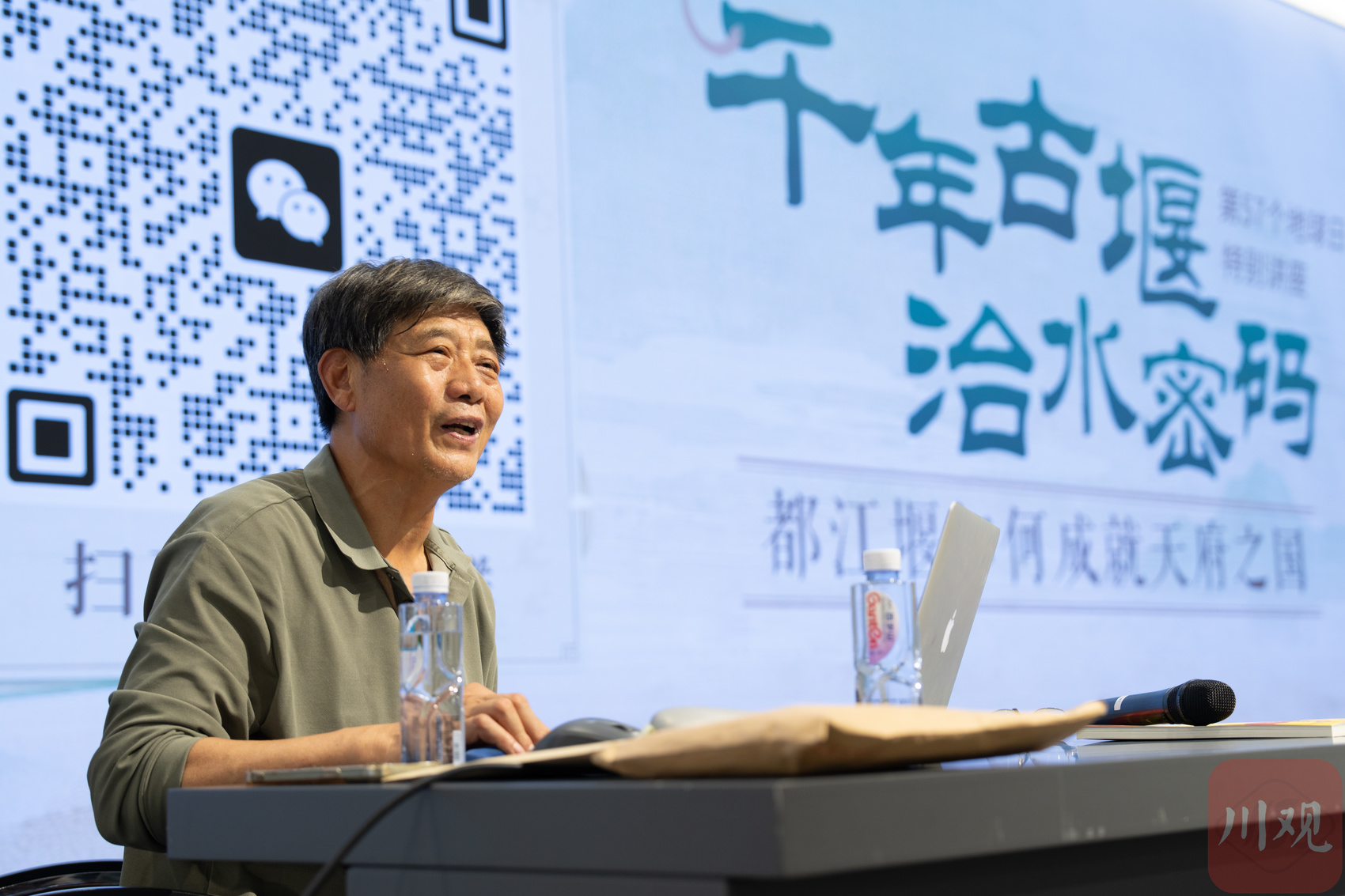 4月26日下午,《千年古堰・治水密码》讲座在成都规划馆举行。图为主讲人王瑞林。