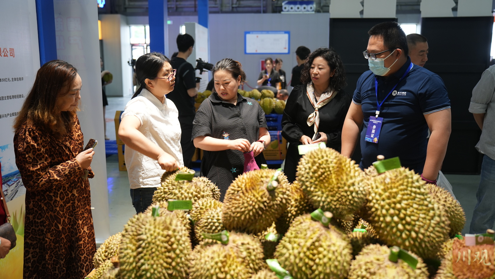 4月26日,进口榴莲集散展示展销中心专场推介会在成都国际铁路港亚蓉欧(国家)商品馆开幕,30余家榴莲经销商齐聚,通过“产地直采、班列直达、港口直销”的方式,为成都市民带来更新鲜、更实惠的泰国榴莲。