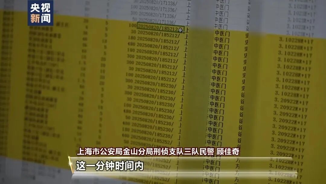 上海市公安局金山分局刑侦支队三队民警 顾佳奇:医生杨某在2025年8月20日18时52分这一分钟时间内,对患者史某开具大量的医疗项目,有中医拔罐、针具针法、颈部推拿、四肢疾病推拿、背部疾病推拿、红外线治疗等项目。在刷完史某的医保卡之后,他紧接着在18时52分30秒,对徐某的医保卡进行空刷套刷。他所开具的项目跟上面史某的项目也如出一辙。在18时52分52秒,他又使用方某的医保卡,对刚才类似的项目进行空刷套刷。