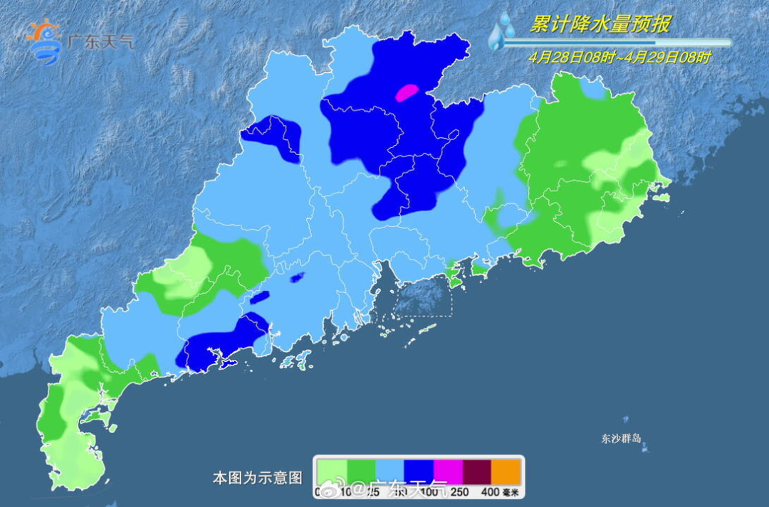 28日,清远、韶关、粤西和珠三角大部分市县有大雨局部暴雨或大暴雨,并伴有短时强降水、8~10级雷雨大风等强对流天气,其余市县多云到阴天,有(雷)阵雨局部大雨。最高气温:南部市县26~28℃,其余市县22~25℃。
