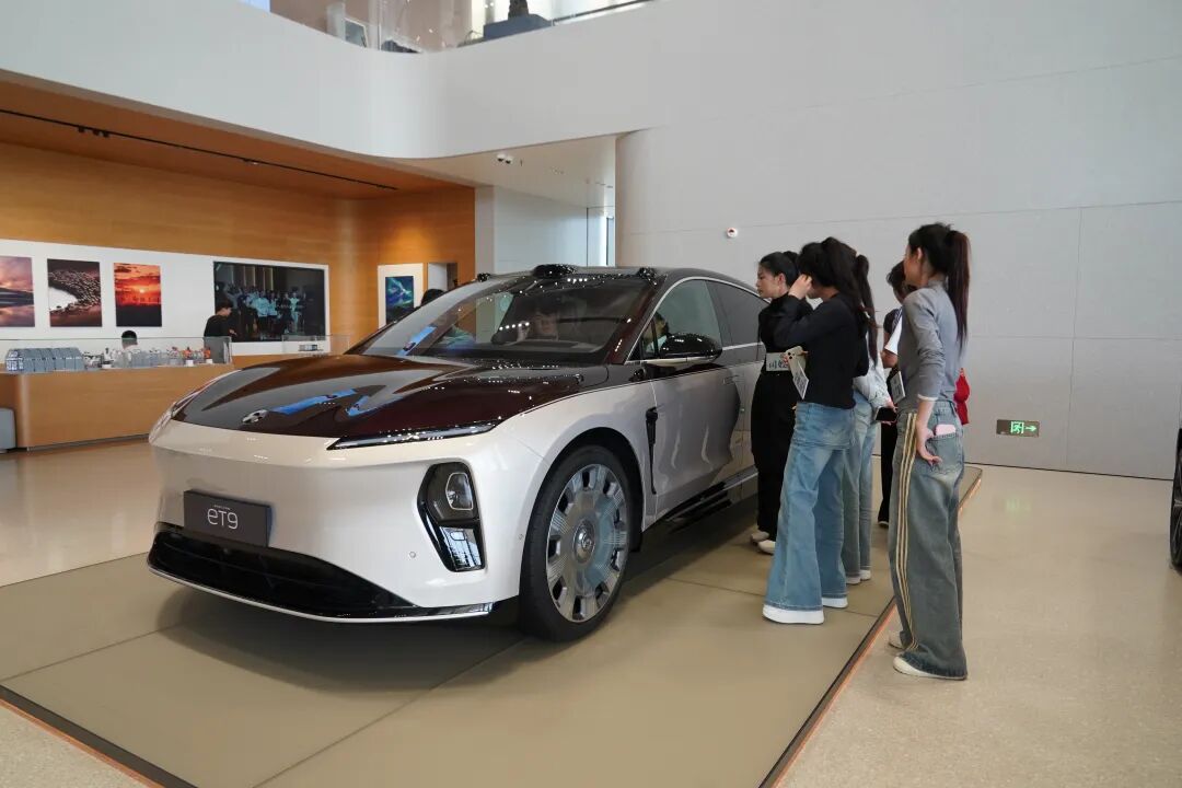 选手们正在蔚来汽车展厅参观最新款汽车。