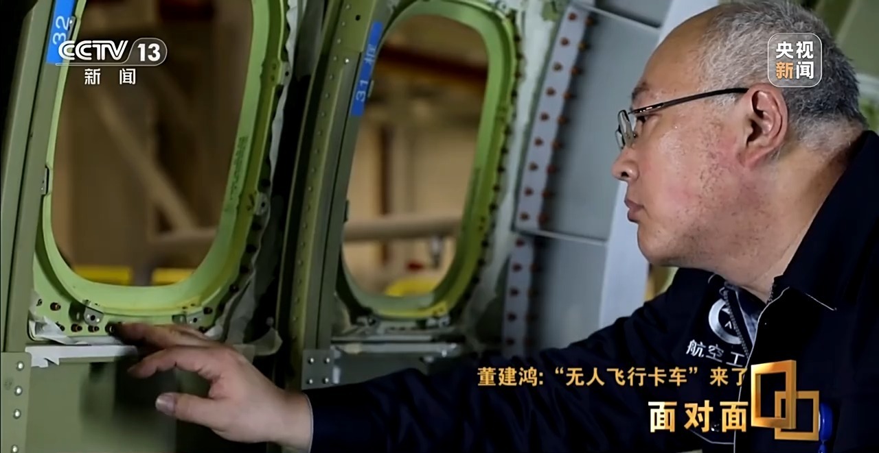 董建鸿:这架飞机可以在地面五分钟以内,把货物全部装到位,达到继续起飞的条件。