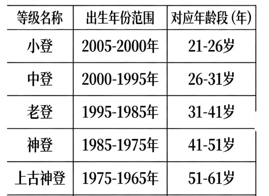 日前,“浙江宣传”在推文中提到,“2026届小登实习”“第一批00后已经有登味了”等自我调侃频繁刷屏社交平台。有人按出生年份细致划分:00后到05后是“小登”,95后到99后是“中登”,85后到94后是“老登”,再往前则被戏称为“神登”“上古神登”。