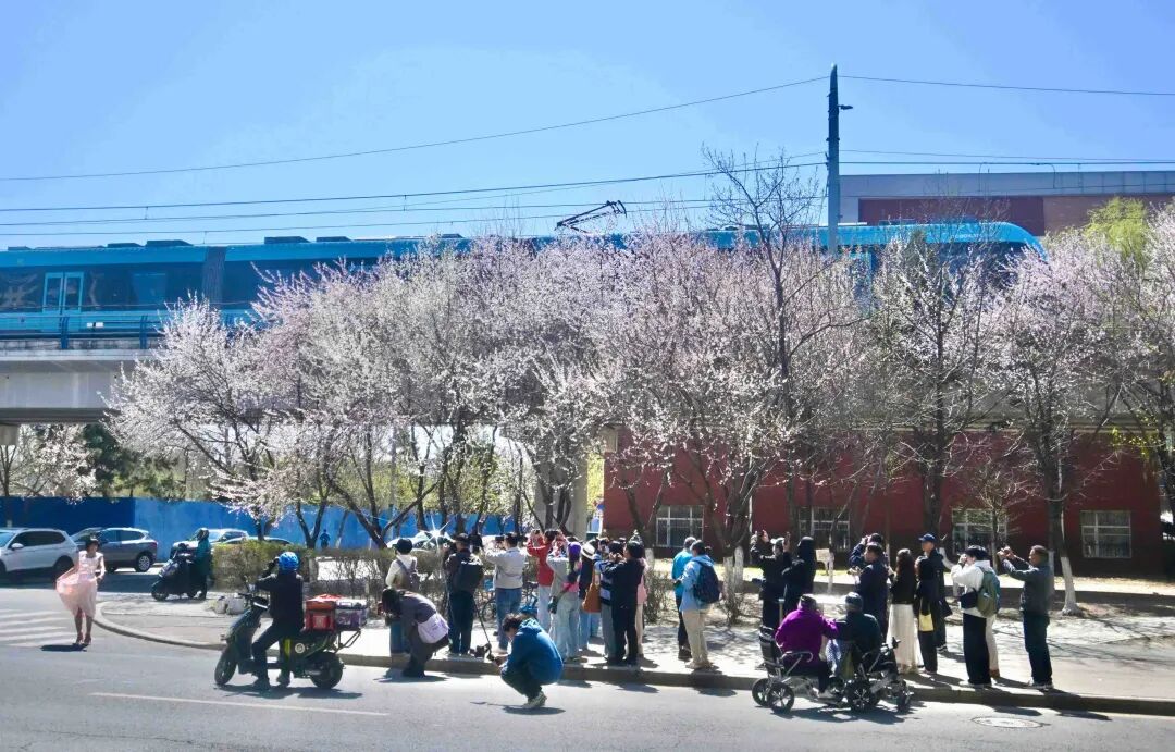 据附近居民介绍,这个路口往年春天也有花开,但今年在网友的偶然发现与自发传播下,突然“出圈”。轻轨的开动、花朵的静止、铁塔的沉稳,在四月春风中交织出动静相宜的诗意。不少市民表示,这样的风景就藏在日常通勤的路旁,让人重新发现这座北国春城的细腻与温柔。