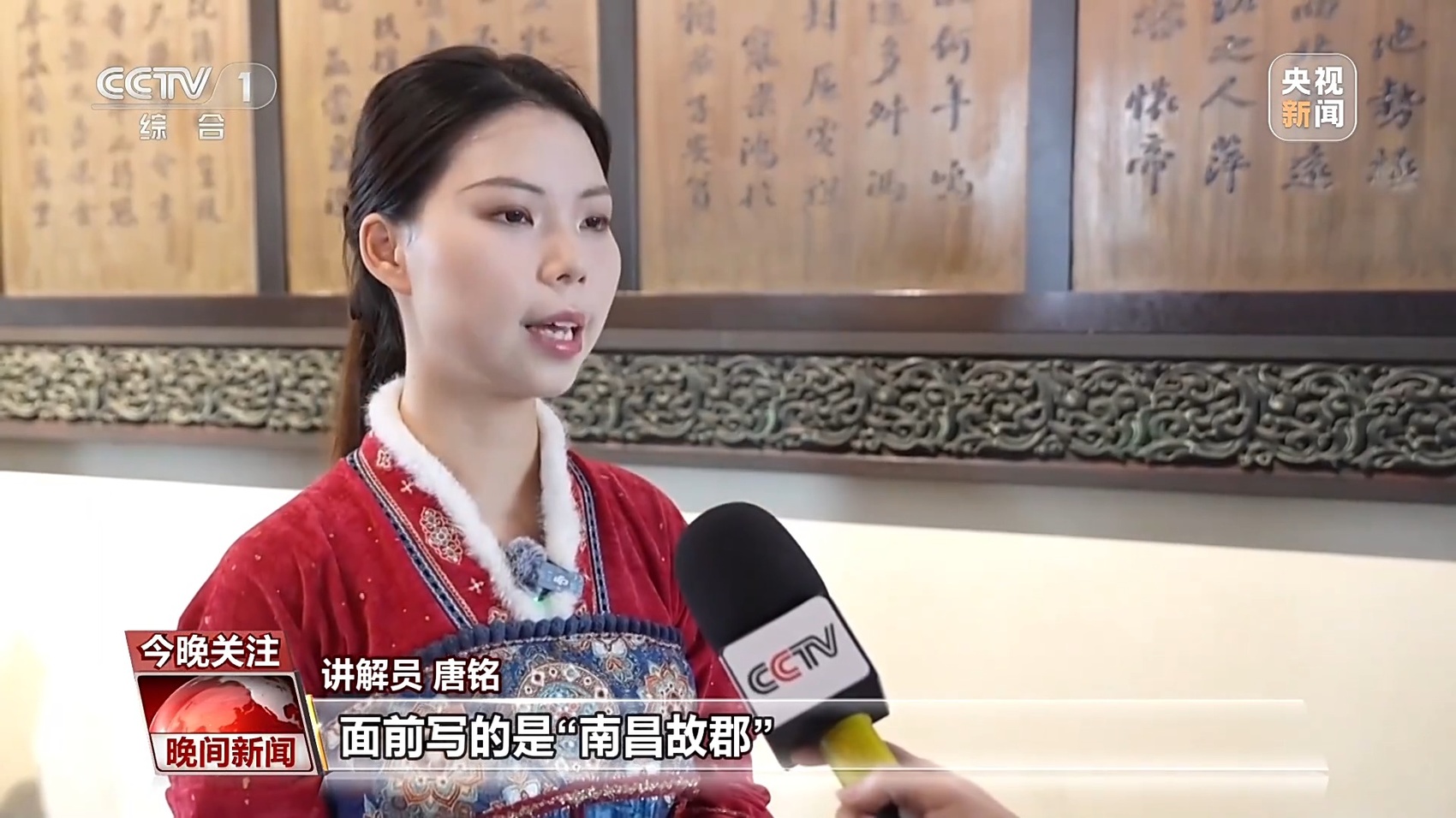 讲解员 唐铭:面前写的是“南昌故郡” ,课本上是“豫章故郡”,有学者就认为苏轼当年在临摹的时候是为避唐代宗李豫的名讳,所以把“豫章”改为了“南昌”。