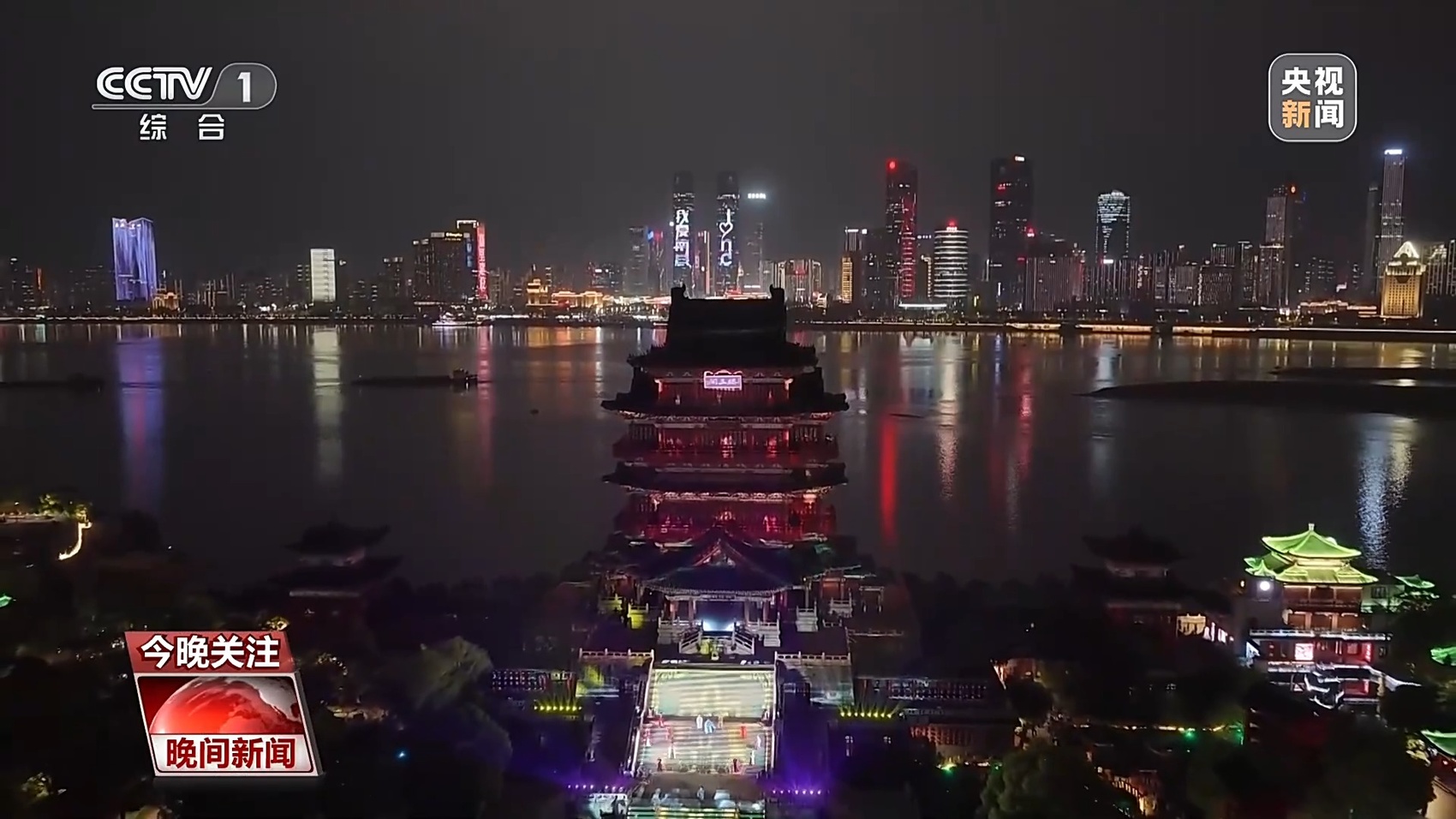 白天的滕王阁庄严典雅,而到了夜晚,这里将呈现不一样的样貌。