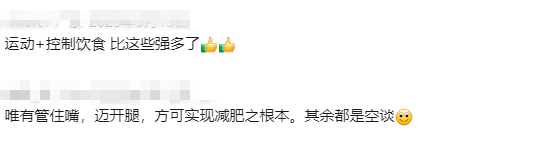 也有网友表示,管住嘴迈开腿才是最佳减肥方法。