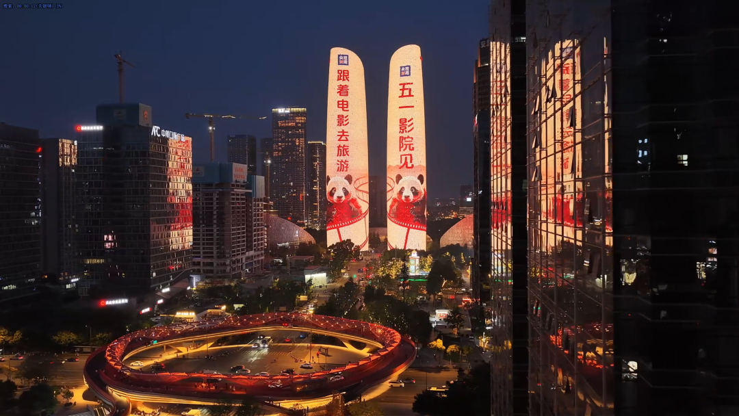 地标建筑天府双塔被点亮