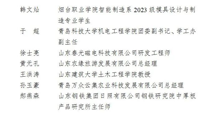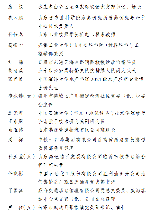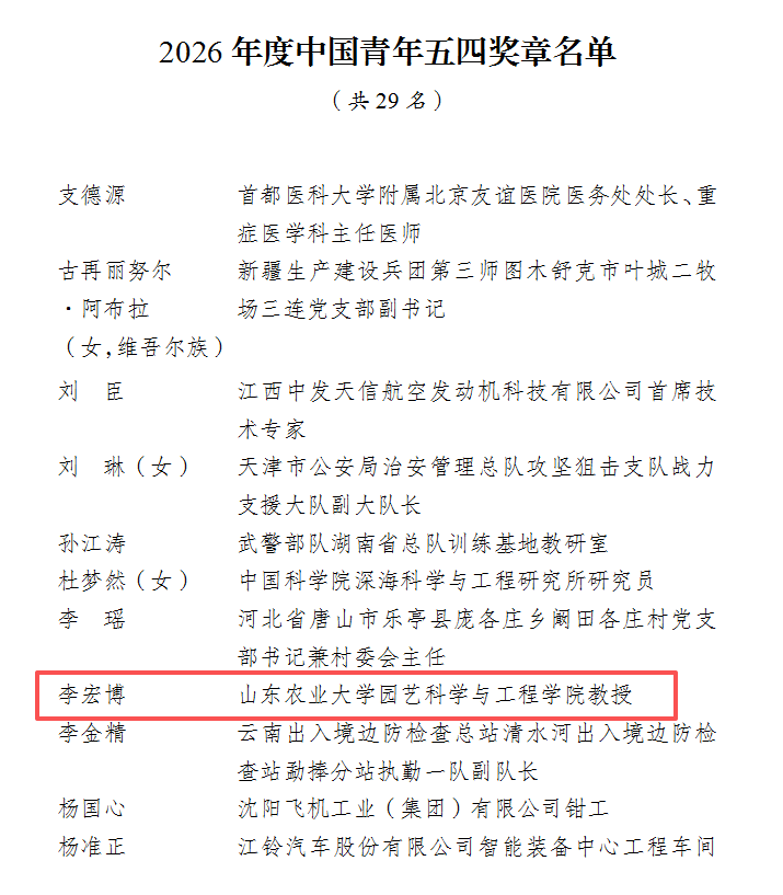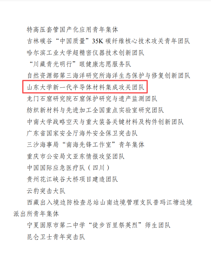 山东28名青年和1个团队获奖。他们分别是:山东农业大学园艺科学与工程学院教授李宏博、山东天岳先进科技股份有限公司执行董事、首席技术官高超2人荣获2026年度中国青年五四奖章;山东大学新一代半导体材料集成攻关团队荣获2026年度中国青年五四奖章集体荣誉;山东科技大学能源与矿业工程学院教授刘学生、国网山东省电力公司青岛供电公司变电运维中心五级职员孙晓兰等26人荣获2026年度新时代青年先锋荣誉。