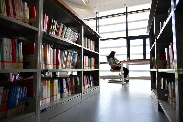 市民在天津滨海图书馆内阅读。新华社记者齐芷玥摄