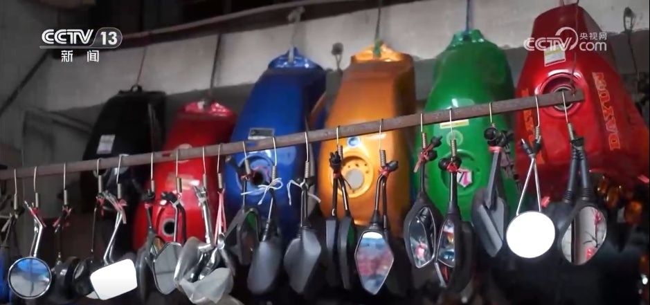 而采访中记者还发现,这里可不只是修修车、卖卖配件那么简单。新产品、新创意、新生意都能在这里快速响应、快速落地,街边的小门店也能跟上全国的大市场。画面中的这位年轻创业者王富贵,就把直播间搬进了小店,专门做摩托车个性化定制坐垫这个细分领域。靠着量身定制的产品,不仅在国内卖得火热,还接到了不少海外订单。创业的灵感就来自本地车友群里的真实需求。在他看来,能把小生意做大,靠的不只是热爱,更是本地完整的产业链给的底气。王富贵说:“跟车友群之间的交流,让我萌生了做定制坐垫想法,一点一点去实试验,我们也各个厂家一起去沟通,选材料的话都选了300多种,研究了9代升级款。”