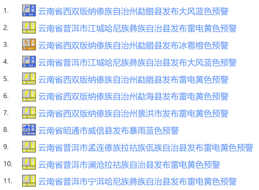中央气象台4月27日10时继续发布强对流天气蓝色预警:预计4月27日14时至28日14时,黄淮南部、江淮北部、华南西部、西南地区南部等地的部分地区将有8级以上雷暴大风或冰雹天气。其中,云南南部等地的部分地区将有10级以上雷暴大风。