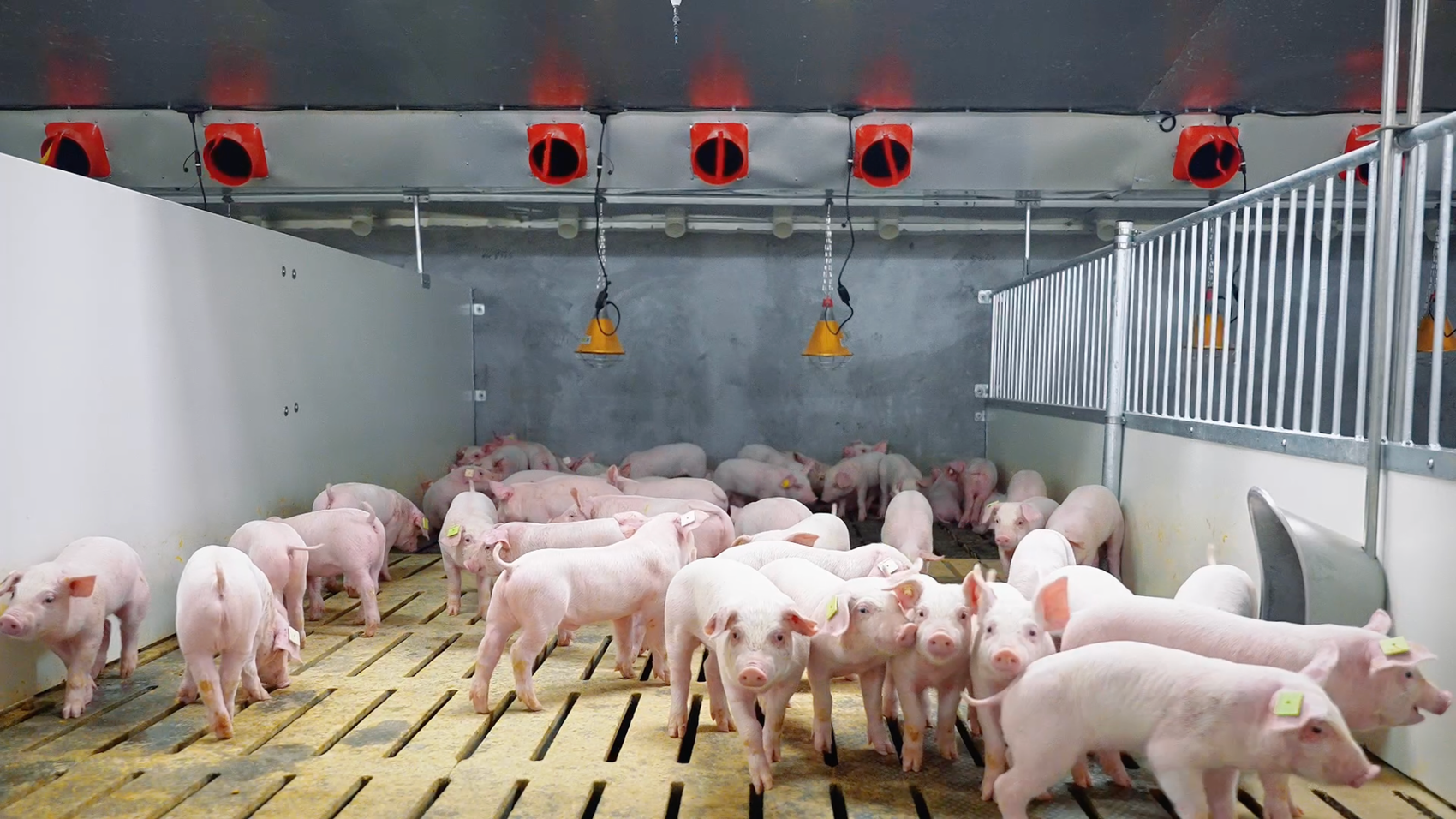 保育舍内,断奶后的仔猪在恒温、洁净的环境中生长。受访者供图