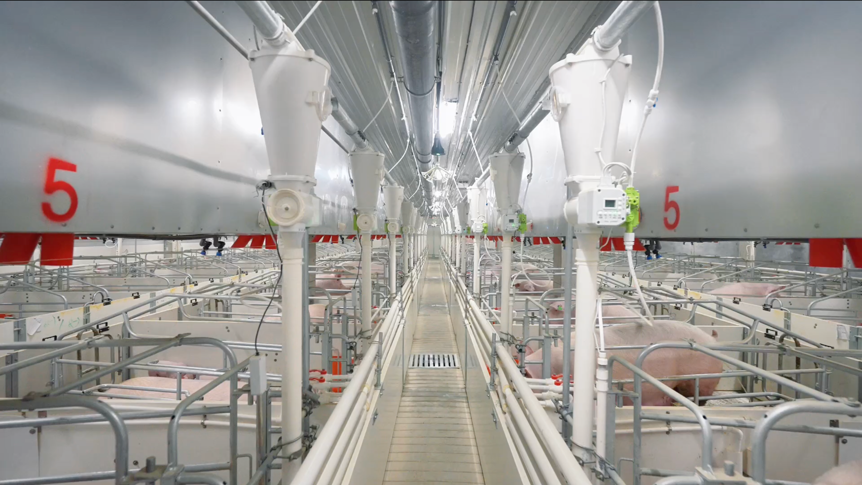这里的猪舍,不是传统印象里的低矮平房,而是一栋栋楼房。不同楼层对应猪只怀孕、哺乳、保育、育肥等不同生长阶段,楼内电梯可以上下左右运行,将猪只送到相应位置。